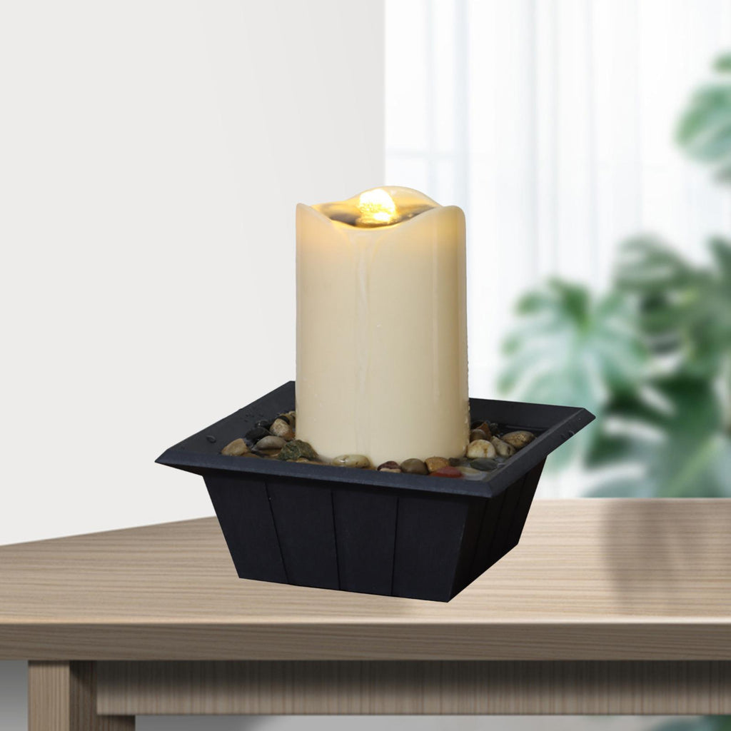 - Water fountain decoration, water candle style home decoration. Use a USB port for the power supply and connect to a DC 5V charger (the charger is not included, you can use a general mobile phone charger).