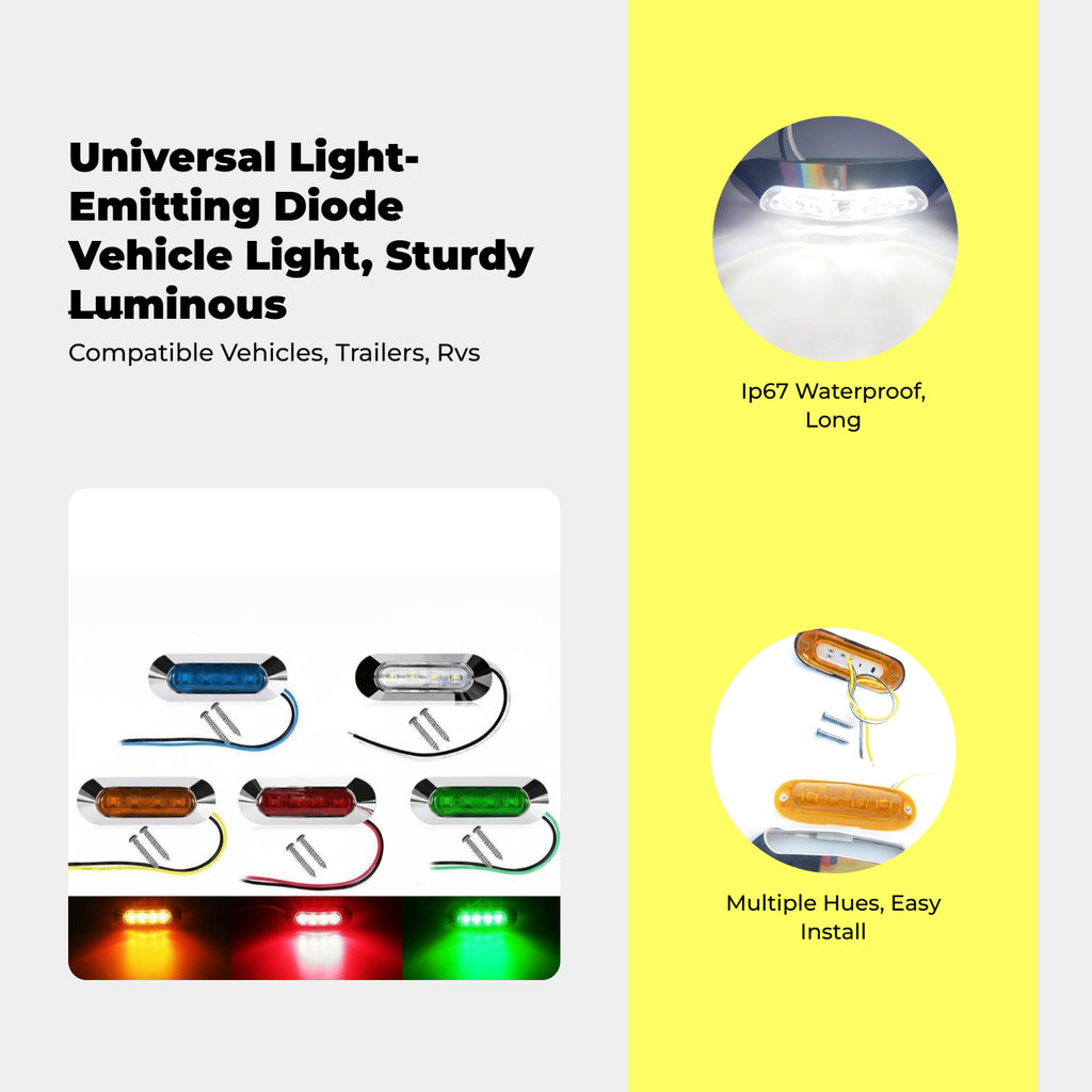 Waterproof light-emitting diode Side Marker Light for Vehicles and Trailers: This intensely-lit light-emitting diode side marker light features an IP67 waterproof making it perfect for vehicles, trailers, RVs, and campers in a variety of driving conditions. double electric potential Compatibility: Supports both 12V and 24V DC, suitable for a wide range of vehicles including vans, pickups, and commercial vehicles. Surface Mount Design & High Brightness: Easy to install with a surface mount, the light-emitting diode strip awayers high visibility for night driving and flashering turns. Versatile Application: Perfect for use as a turn flasher, warning light, and side clearance marker in awaypath, work, and common driving situations. robust Practical: Made from quality materials with a frame, this light delivers strong practicality and cost-effectiveness for vehicle upgrades.Specification: