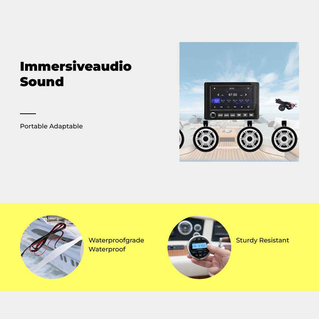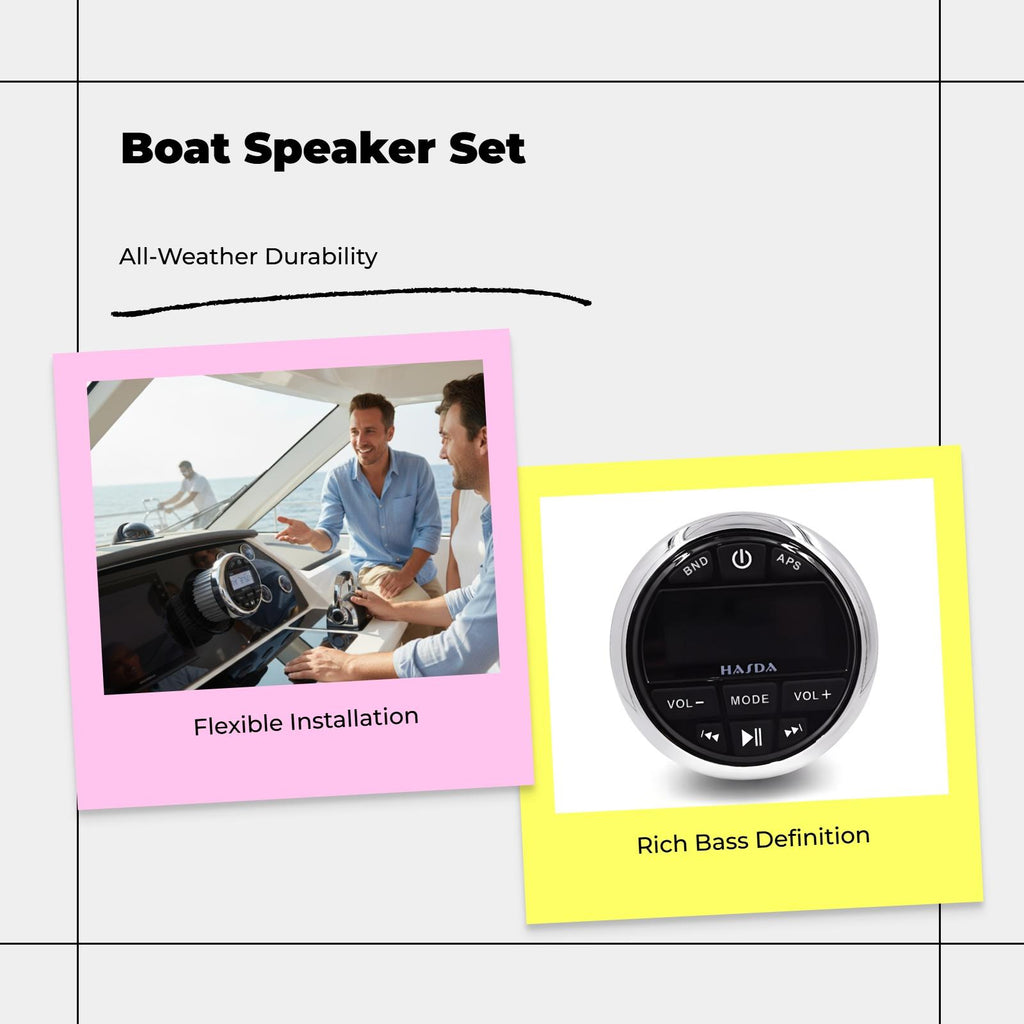 【High-Quality Waterproof Nautical Speaker】Enjoy high-fidelity audio quality with this waterproof nautical speaker, perfect for outdoor travel, boating, and nautical activities. The connectivity and stereo audio system deliver immersive audio for any outing.【Sturdy and Dustproof Construction】Built with PC material and an anti-rust metal bracket, this speaker is designed to withstand harsh environments, ensuring long performance for outdoor and nautical use.【Portable and Sleek for Travel】Its lowdesign design makes it easy to carry and install, perfect for portable use on boats, yachts, and outdoor excursions.【Strong Practicality and Adaptable Application】Suitable for various scenarios such as outdoor parties, travel, and nautical leisure, offering dependable playback and stereo pairing.【Cost-Effective Choice with Sophisticated Features】Equipped with connection, remote control, and weather-resistant construction, providing value for users seeking studio-quality sound and convenience.Specification: