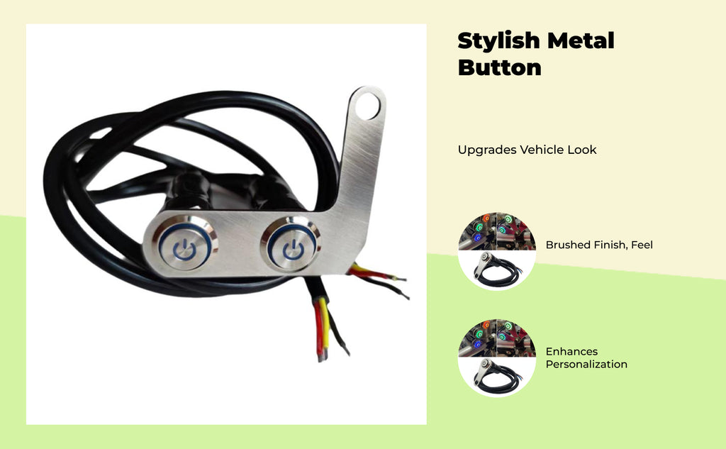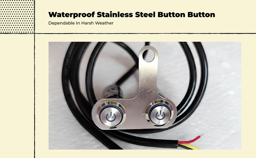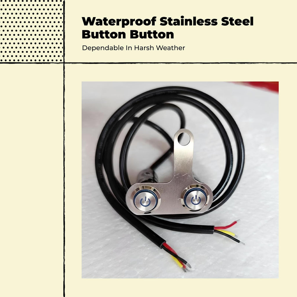 [Waterproof Stainless Steel button for Motorcycle and ] This metal button provides dependable waterproof protection and is perfect for controlling the horn and spotlight functions on motorcycles, s, and scooters. Suitable for outdoor upgrades and all-weather use. [High-Quality and resilient Construction] Made from stainless steel with a robust housing, this button is built for sturdyduty performance, ensuring long durability against rain, ice, and debris. [Versatile Multi-Function Control] Supports horn, spotlight, and double activation modes, making it perfect for indications and bright lighting during night rides, camping, or fishing. [Easy Installation and Universal Compatibility] Features a 19mm flat top design and adjustable mount for handlebar hole diameters of 22mm (7/8"), compatible with most motorcycles, s, and scooters. [Secure and dependable Connection] Momentary push-button design with a secure clasp wire connection delivers stable circuit control, perfect for frequent use and outdoor environments.Specification: