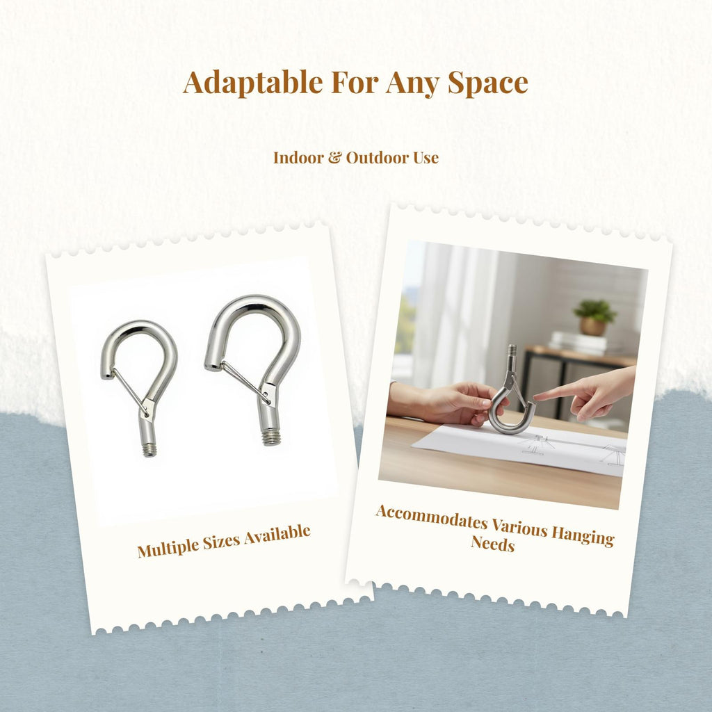 "adaptable Wire Rope Hanger for Multiple Uses" This stainless steel wire rope hanger with snap hook is perfect for hanging lights, garage tools, and storage containers, offering strong support and easy installation for both indoor and outdoor applications. "sturdy Stainless Steel Construction" Made from resistant stainless steel, this wire rope hanger ensures long performance and load-bearing capacity, suitable for various hanging needs. "Secure and Practical Snap Hook Design" The coil snap hook provides a dependable locking mechanism, making it easy to attach and detach items securely, perfect for common use, camping, and DIY projects. "Flexible and Adjustable hanging Accessory" This multifunctional hanging fastener is compatible with different wire rope sizes and can be used for hanging sports equipment, potted and more, meeting diverse storage and organization requirements. "Lightweight and Easy to Assemble" The small and lightweight design allows for quick assembly and disassembly, making it a practical accessory for home, garden, and travel.Specification: