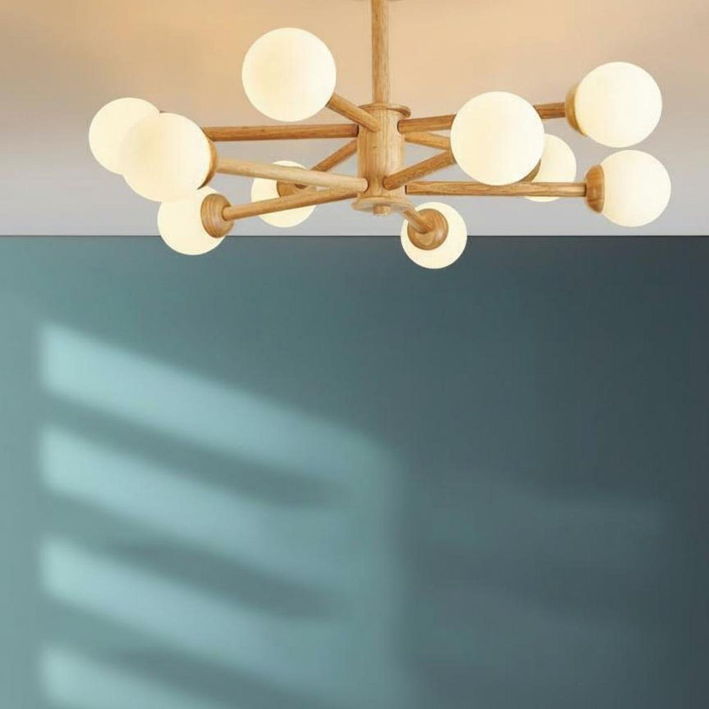 Wood Ceiling Light, Modern Hanging Fixture, Bedroom, Living Room, Dining Room Wood 10 Heads