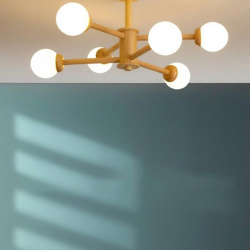 Wood Ceiling Light, Modern Hanging Fixture, Bedroom, Living Room, Dining Room Wood 6 Heads