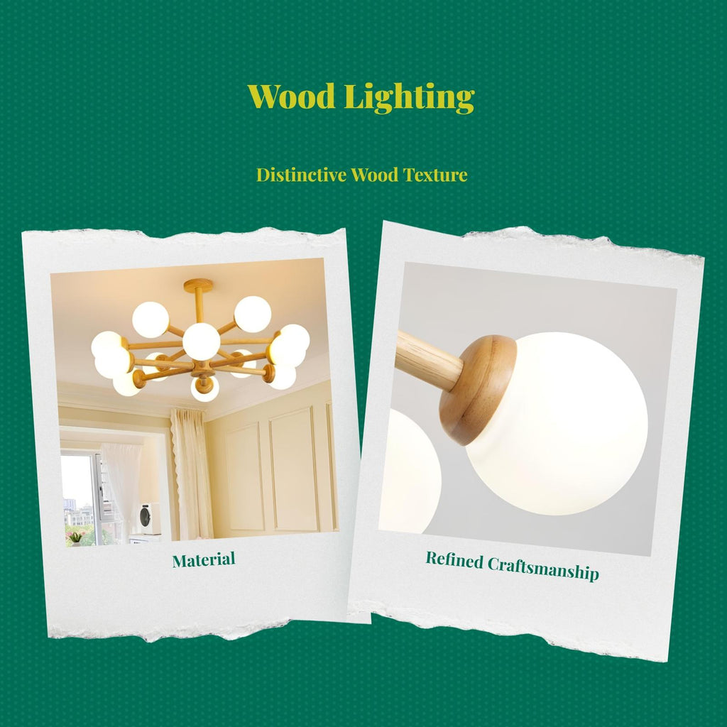 Wood Ceiling Light, Modern Hanging Fixture, Bedroom, Living Room, Dining Room Wood 8 Heads