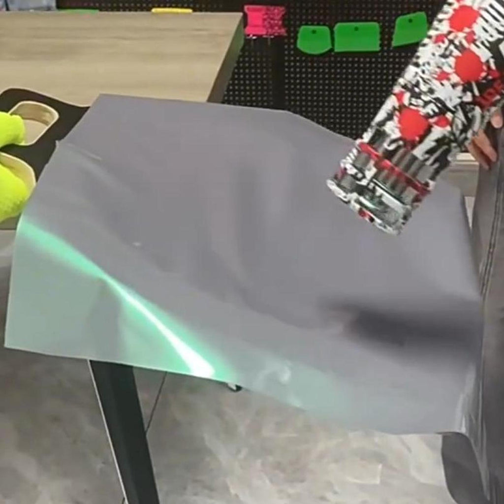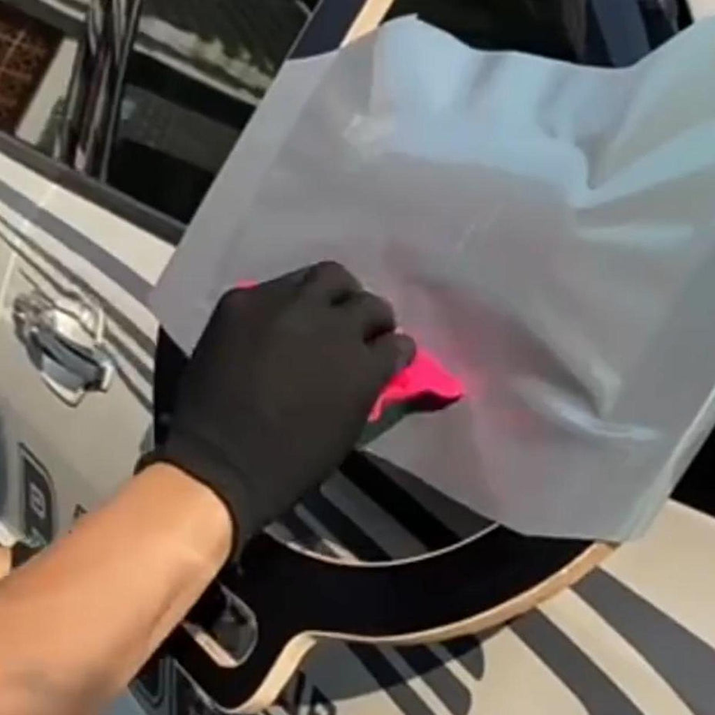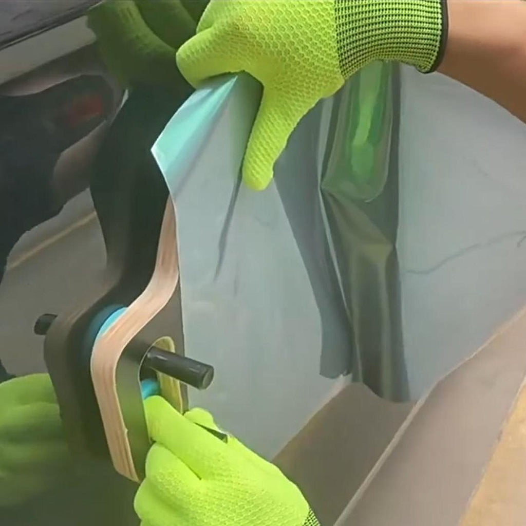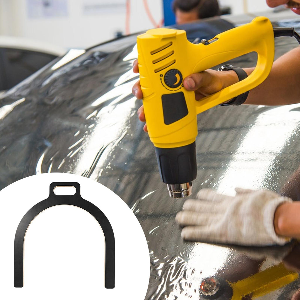 - 【How to Use】U shaped car mirror wrap tool. You just need to attach the film to the tool, trim it to the right size, and sticky it onto the tool's surface, revealing the handle; Following this, soften the car film using a hot air tool, apply the film to the car's body, and rub it with a vinyl scraper for fitting