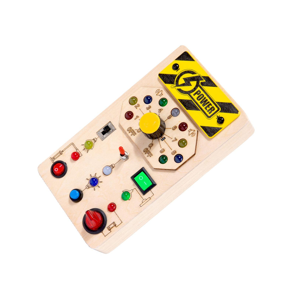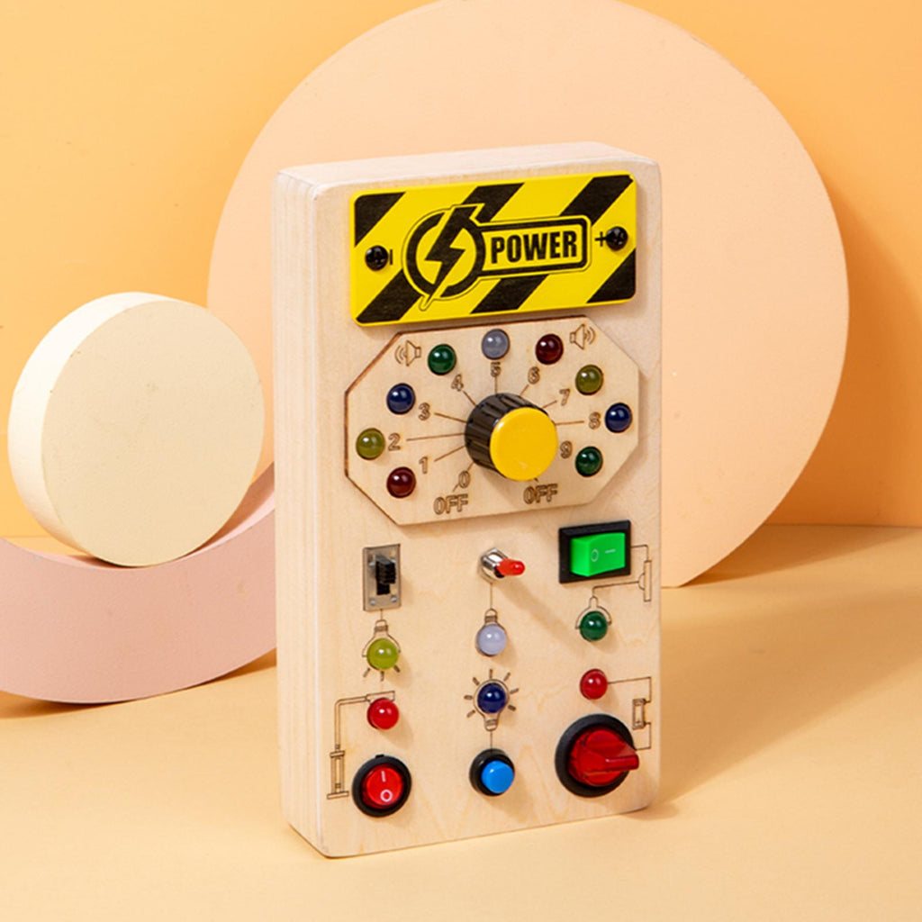 【Music Busy Board】Montessori busy board with led light to control different colors of lights, Rotating light flash switch, word phonetics.
