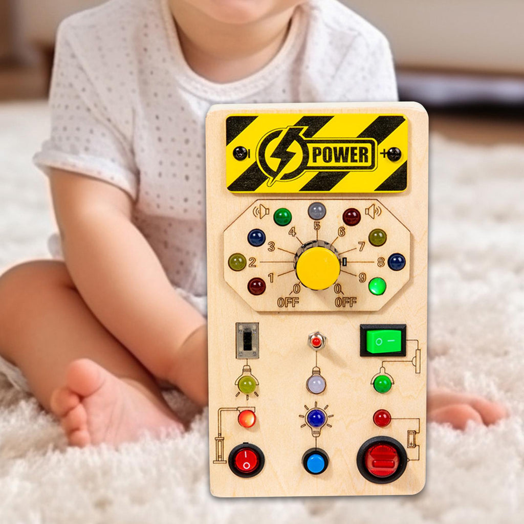 Maxbell Wooden Busy Board with LED Light Educational for Boys Girls Activities Gifts