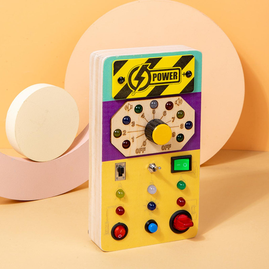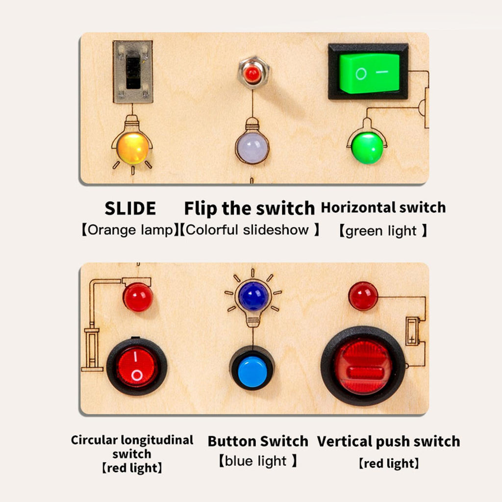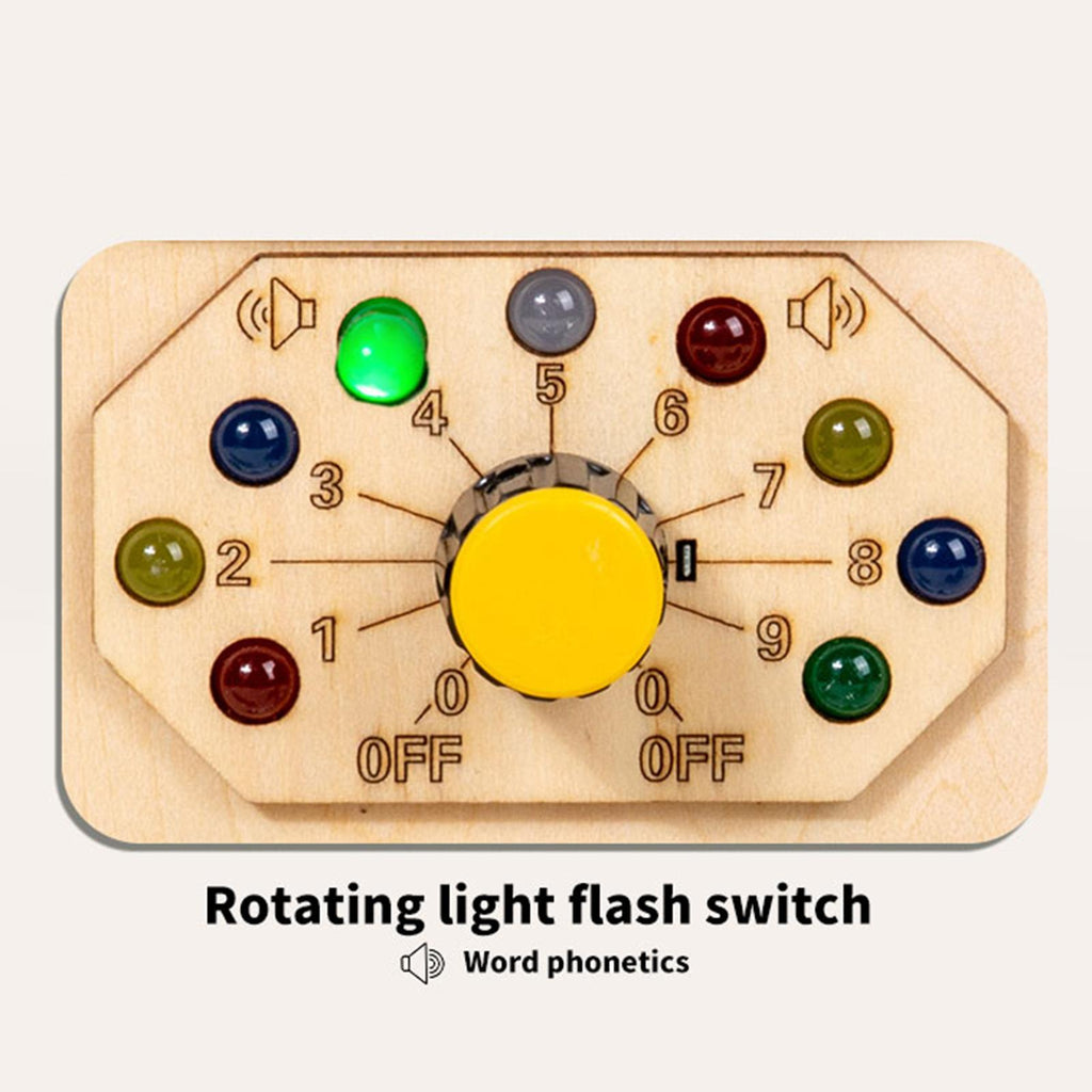 【Music Busy Board】Montessori busy board with led light to control different colors of lights, Rotating light flash switch, word phonetics.