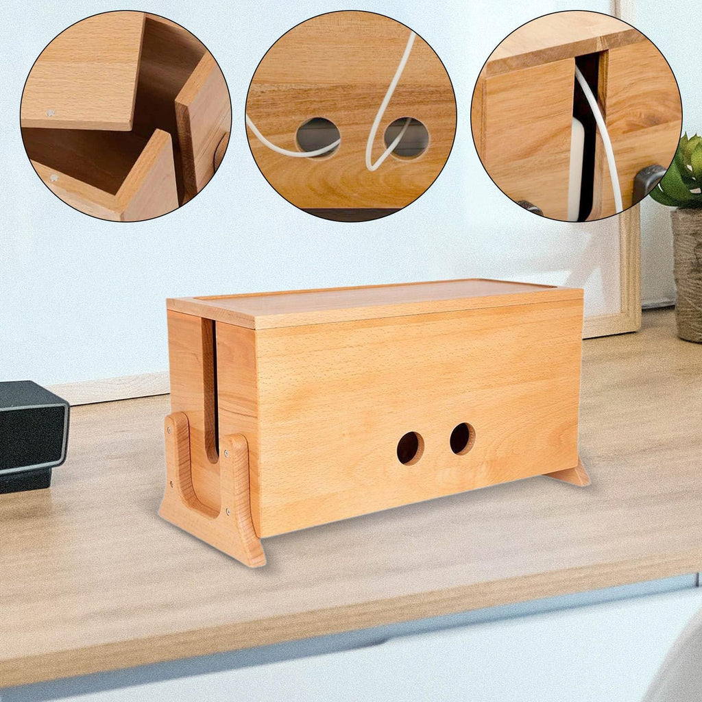 Maxbell Wooden Cable Management Box Desk Storage Living Room USB Hubs Cord Organizer