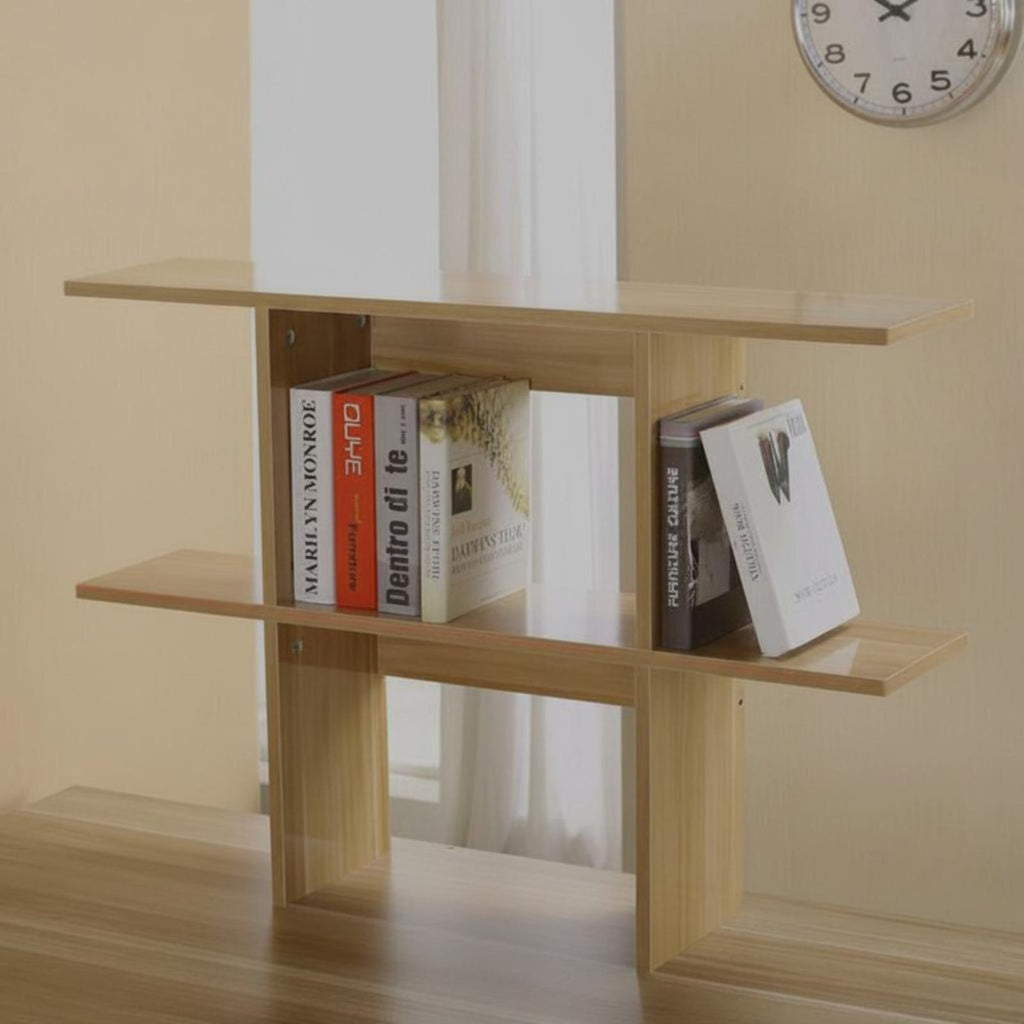 Wooden Desktop Organizer, Multitier Storage Rack, Office Display Shelf Light Walnut 80cm