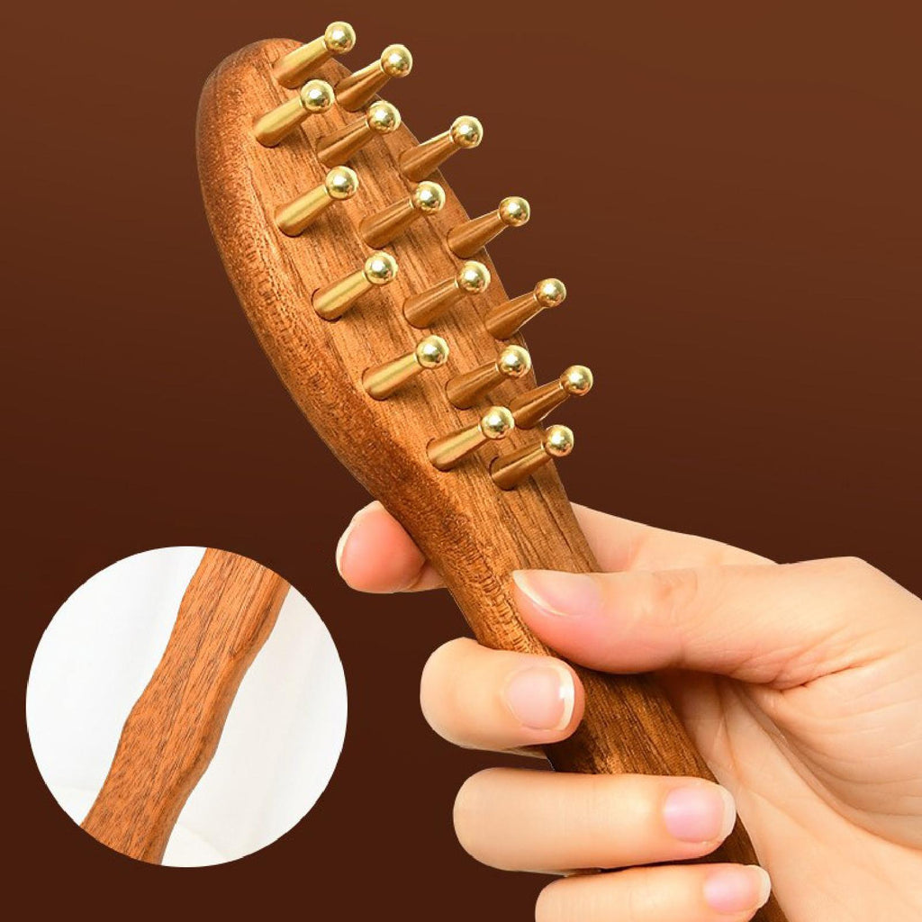 【Material】: This Head Massager features a wood handle that is gentle on the skin and brass teeth known for good heat conduction. The 16 brass teeth are precisely aligned to fit the scalp's curve, generating warmth through friction that penetrates acupoints, blending traditional wellness with modern craftsmanship