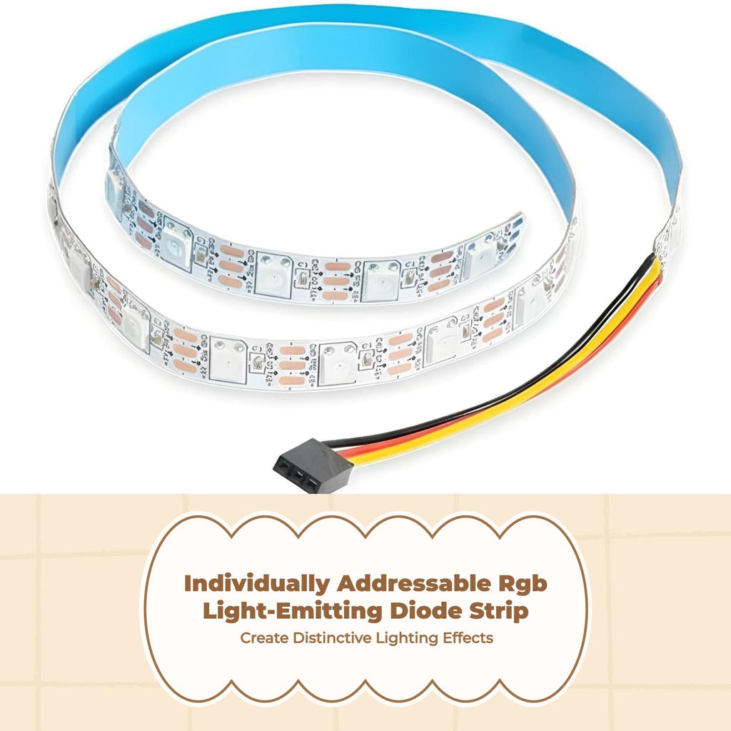 【Programmable WS2812 RGB light-emitting diode Strip for DIY Projects】This flexible, addressable light-emitting diode strip provides brilliant full-color lighting, perfect for home decoration, bedrooms, living rooms, and creative DIY projects. Compatible with Arduino and Raspberry microcomputer microcontrollers, it lets you customize lighting effects for any indoor setting.【High-Quality and Practical Lighting Solution】Equipped with high-brightness SMD 5050 light-emitting diodes, this strip offers dependable performance for lighting rooms, shelves, cabinets, mirrors, and desks. Its flexible design makes installation simple and enables personalized setups.【Versatile Scene Modes and Smart Control】Enjoy a variety of color choices, segmented color controls, and music sync features. Perfect for game rooms, lounges, hotels, and shop decorations, this light-emitting diode strip supports smart app control for tailored atmosphere.【Individually Addressable light-emitting diodes for Creative Effects】Each light-emitting diode can be controllight-emitting diode separately, allowing for animated color chasing and distinctive lighting designs. perfect for DIY hobbyists and technology hobbyists.【Cost-Effective and resilient Choice】Constructed with high-quality materials, this light-emitting diode strip delivers long performance and great value for a wide range of indoor lighting needs.Specification: