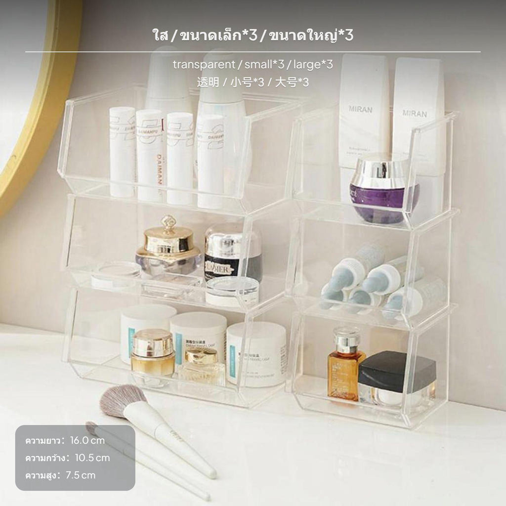 [Clear Visibility & Efficient Organization] 2-piece transparent makeup organizer set brings transparency and sophistication to your desktop. The see-through design allows easy identification of cosmetics, lipsticks, stationery and assorted items, ensuring everything is neatly stored.[Stackable & Space-Saving Solution] Organized storage is simplified with the stackable function and matching height design, maximizing your upright desktop space in vanity corners, offices, bedrooms, or dorm rooms.[multipurpose Use for Multiple Scenarios] Use as a cosmetic display box, pen holder, or open storage solution for skincare, accessories, and small essentials—perfect for dressing tables, desks, or as a space-saving home organizer.[clean contemporary Acrylic design] The transparent plastic (PS) construction offers a sleek, minimalist look that blends seamlessly with any décor while providing stable support for single or stacked use.[Flexible Size Combination] Includes a single large box (16cm x 10.5cm x 7.5cm) and a single small box (10cm x 8.5cm x 7.5cm), meeting diverse storage requirements. Easily combine and rearrange based on your needs to keep your environment tidy.Specification: