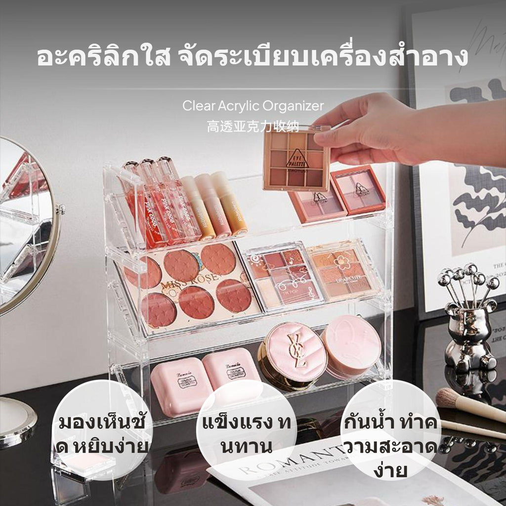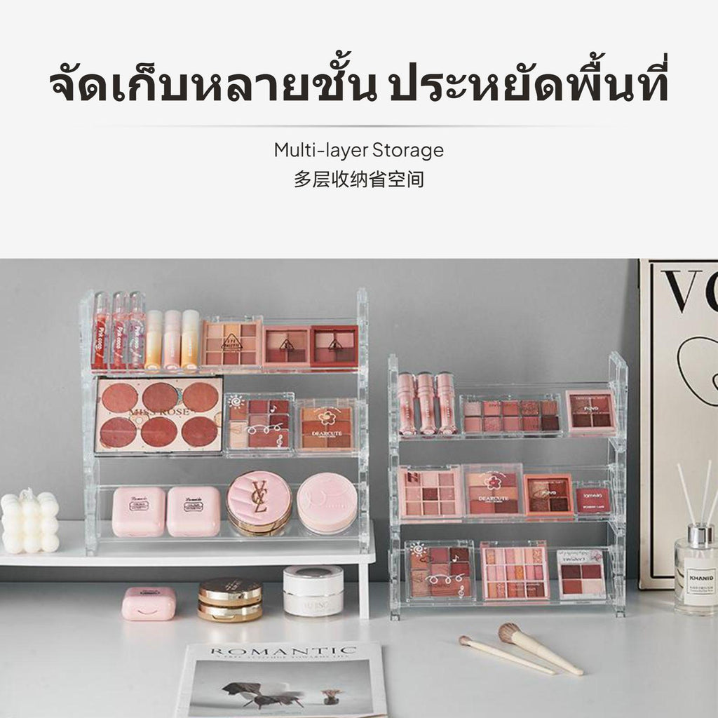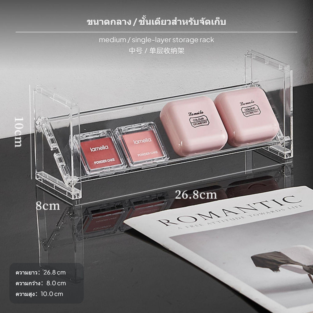 [Clear and adaptable Storage] This transparent PET makeup organizer offers easy visibility, allowing you to instantly locate and retrieve your cosmetics such as eyeshadow palettes, lipsticks, and compacts.[Multilevel Space Saving Design] Features single-tier and 3-tier step design choices, maximizing upright space and efficiently categorizing a wide range of makeup items for a neat, organized desktop or vanity.[Simple and Stylish Look] Minimalist aesthetic complements various home decor styles, making it suitable for placement in bedrooms, bathrooms, or any individual care area.[Flexible and Easy to Clean] Detachable design allows flexible arrangement and hassleeffortless cleaning, giving you the convenience to customize storage and maintain tidiness.[Tailored for Makeup Lovers] Choose from moderate or large sizes to accommodate different storage needs, perfect for organizing makeup, skincare, or stationary essentials—perfectly designed for home, dorm, or professional use.Specification: