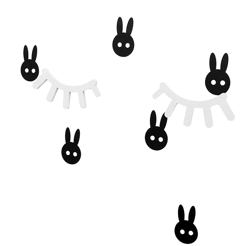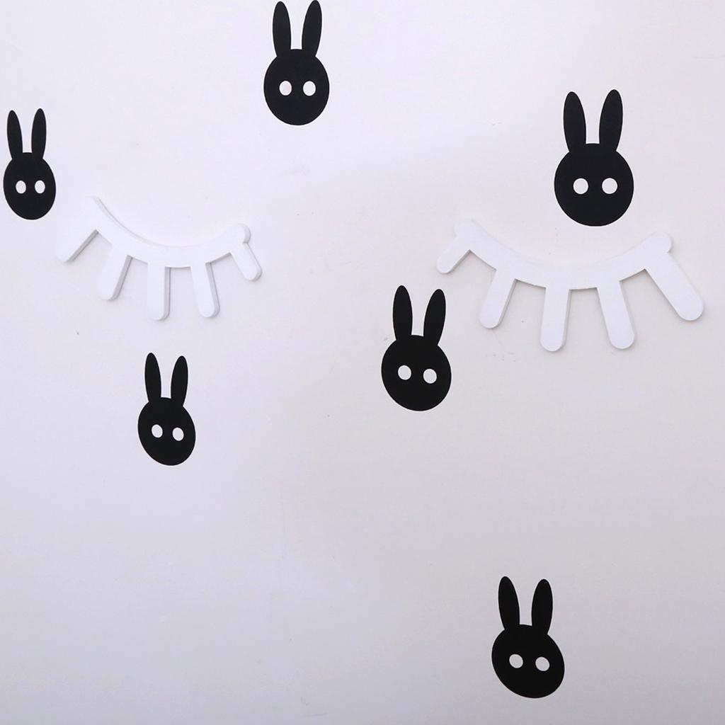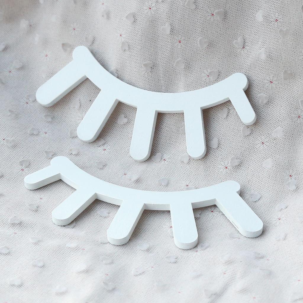 Maxbell 3D Wood Eyelashes Wall Decal Bedroom Sticker for Kids Baby Room White