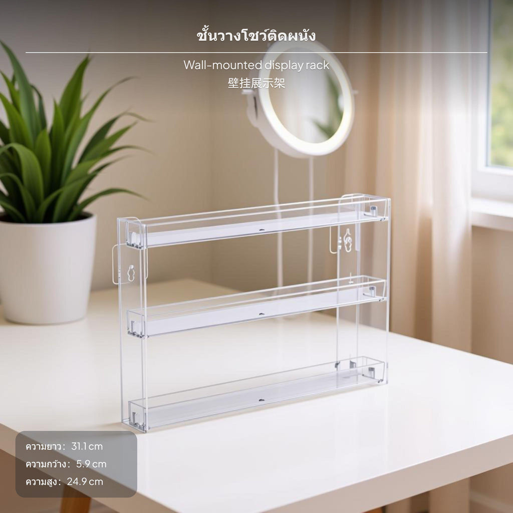3tier Wall Mounted Transparent Cosmetic Organizer, Makeup Storage Rack for Dorm Vanity, Lipstick Perfume Skincare Holder 1 Pack