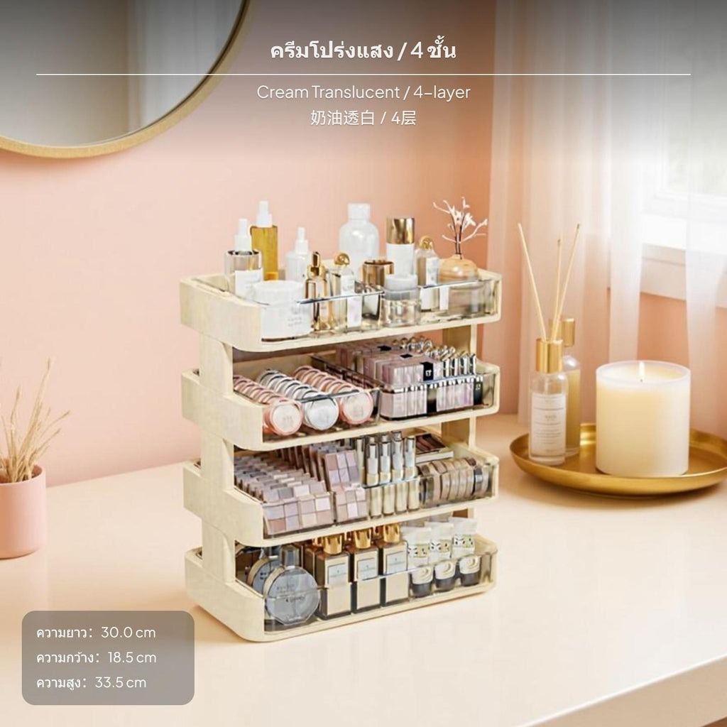 4-Tier Cosmetic Organizer, Desktop Makeup Storage with Transparent Drawers, Large Capacity, Simplistic Plastic Box for Vanity Table, Lipstick, Skincare Trans Cream 4L