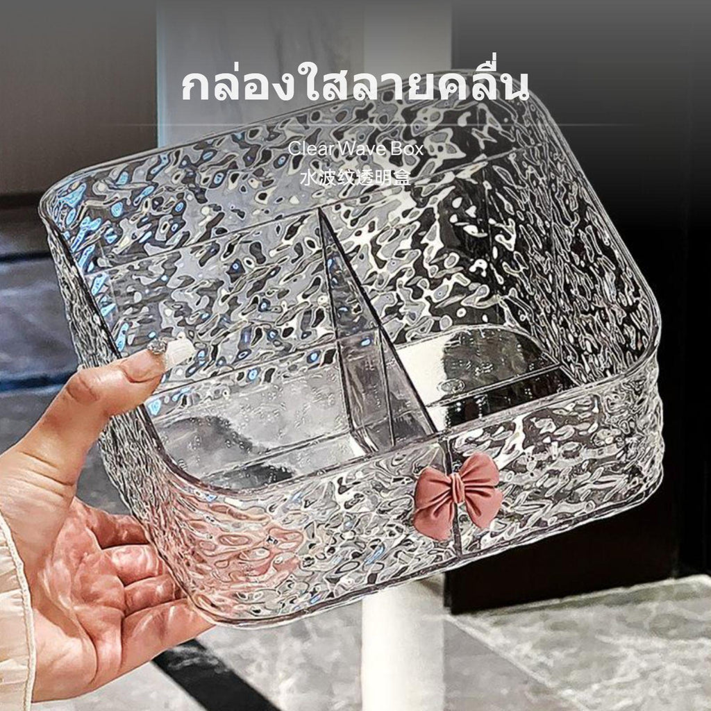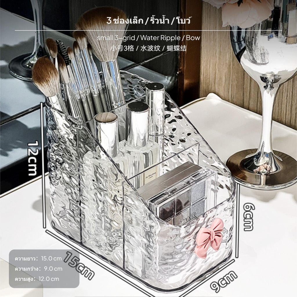 Acrylic Cosmetic Organizer, Desktop Makeup Storage Box, Large Capacity, Clear Ripple Design for Vanity, Lipstick & Skincare Holder S 3 Grid with Bow