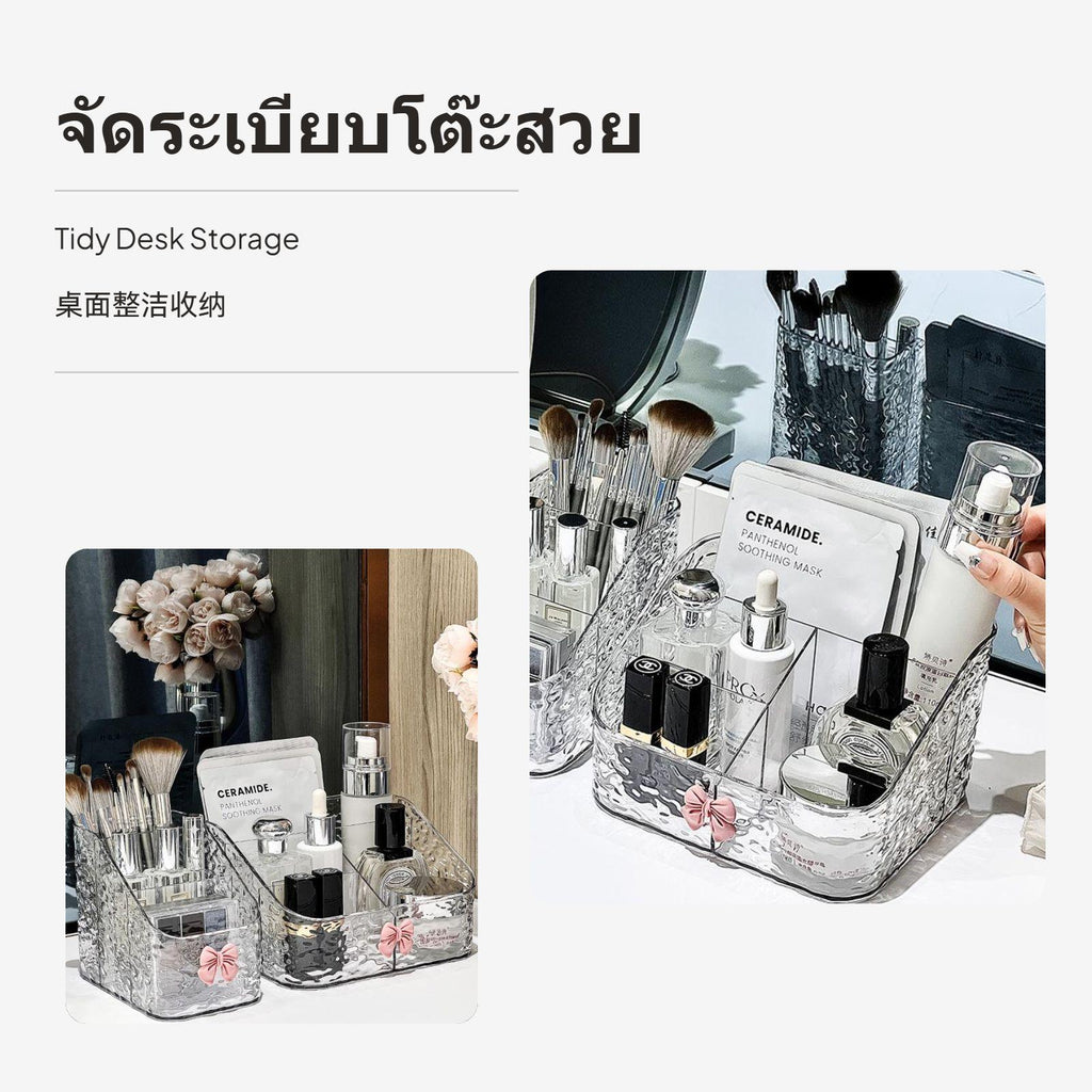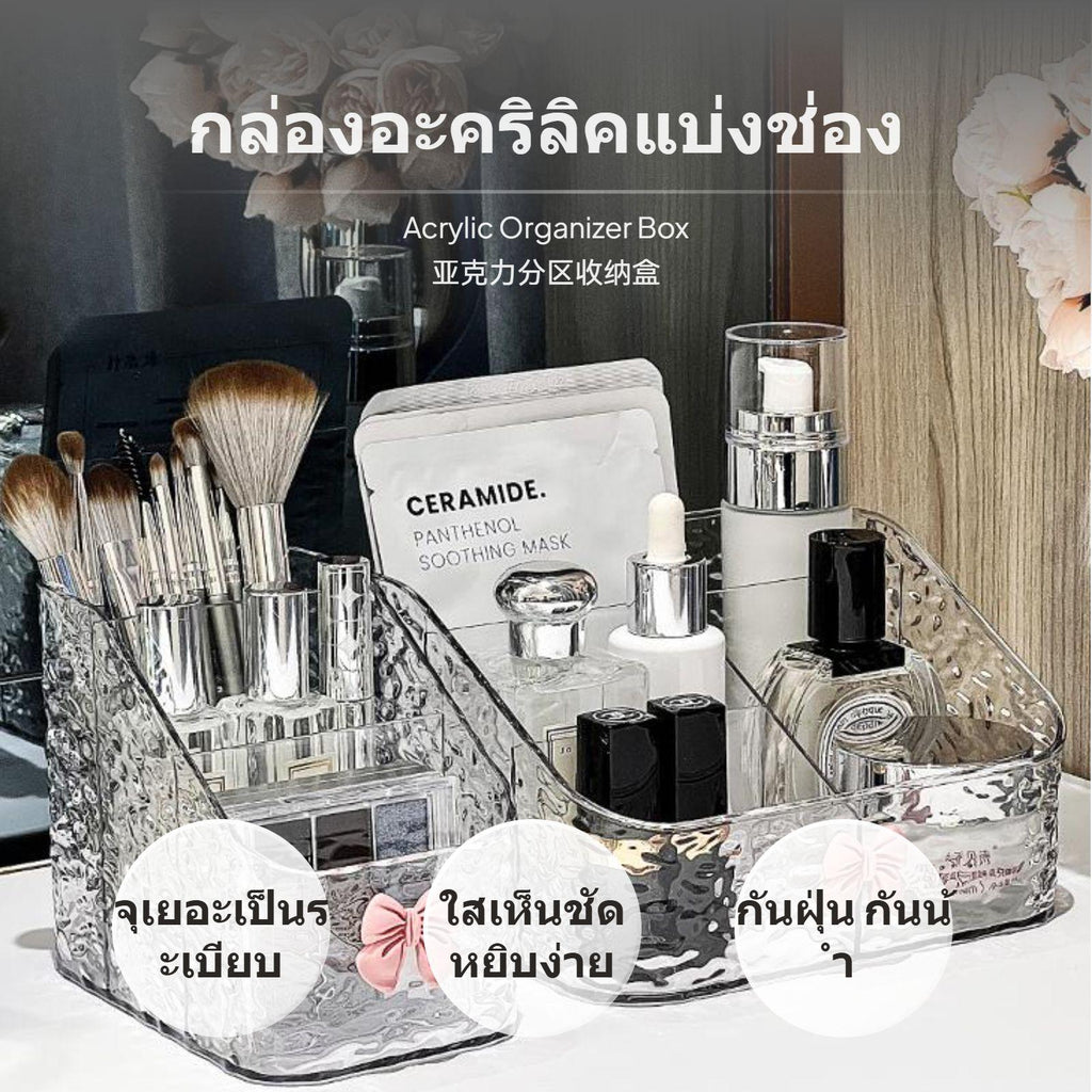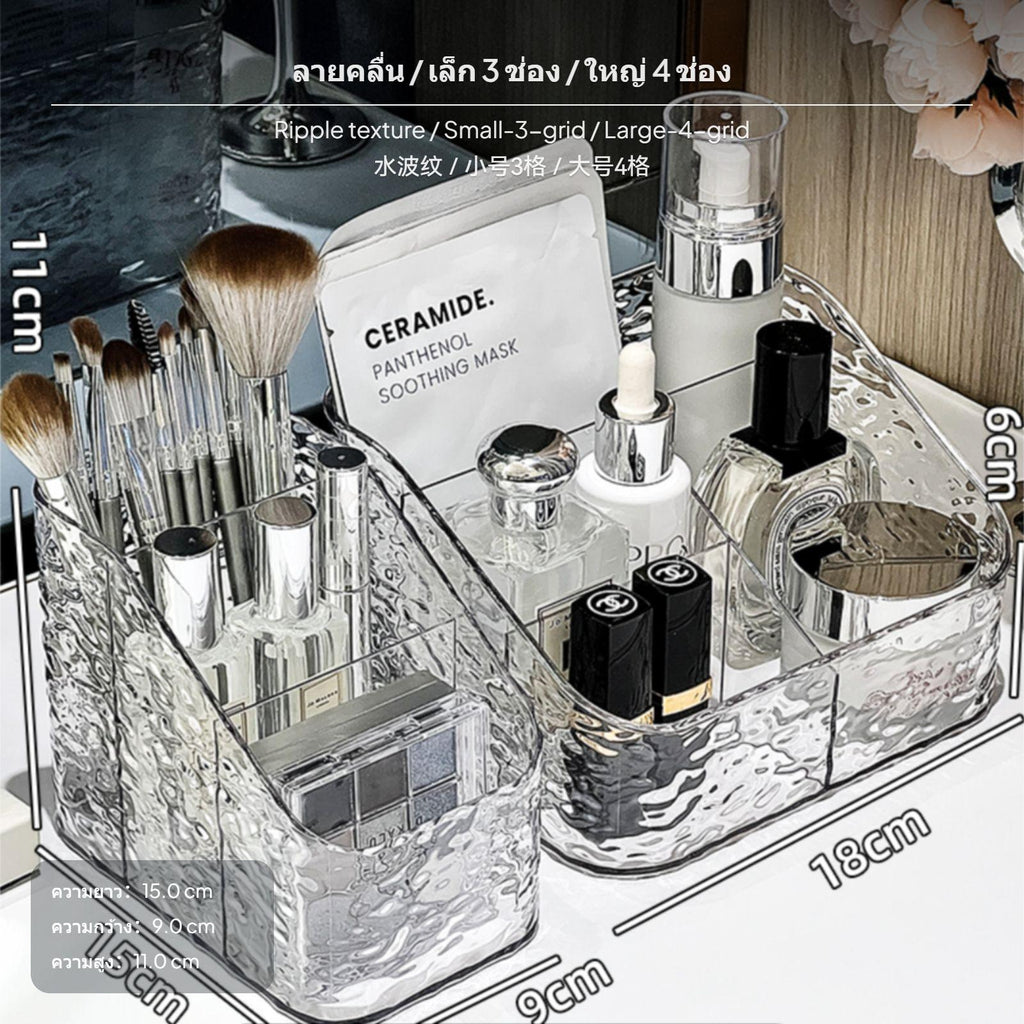 [Elegant Clear Ripple Design] The acrylic cosmetic organizer features a chic ripple texture, creating a sophisticated look for your vanity or desktop.[Multiple Compartments for Organization] Designed with several adjustable sections, it effortlessly sorts lipsticks, skincare, brushes, and various cosmetics, reducing clutter.[Ample Storage Capacity] With both 3compartment and 4compartment choices, and available combinations, this storage box suits small to large items, easily accommodating bottles, masks, and accessories.[Easy entry Open design] The trapezoidal open layout allows for quick and convenient entry to your cosmetics, fitting even tall bottles without hassle.[High-Quality & Stylish Practicality] Made from sturdy, transparent material, it blends strength and transparency to add both function and aesthetic appeal to any room.Specification: