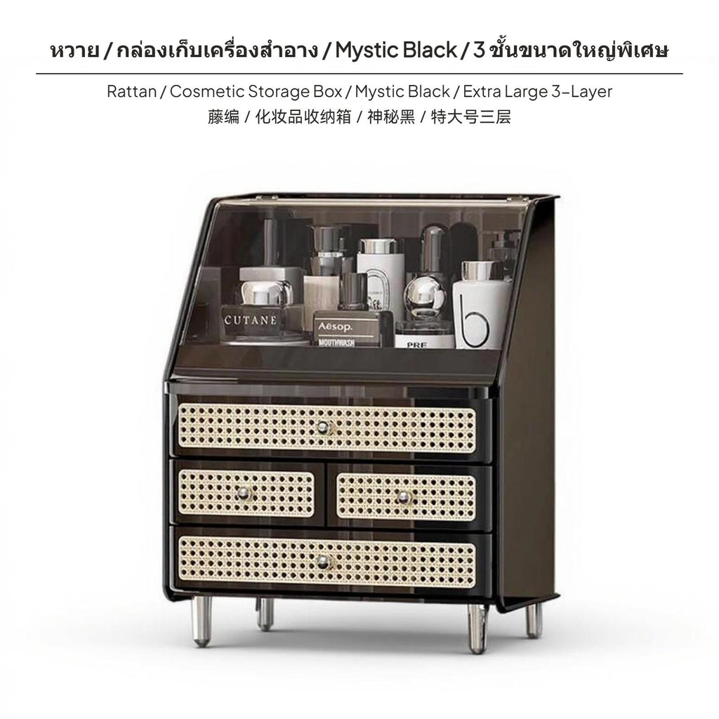 Maxbell Acrylic Cosmetic Organizer with Drawers, Large Capacity Makeup Storage Box, Dustproof Vanity Organizer for Skincare & Lipsticks, Multitier Desktop Storage, Elegant Design for Bedroom, Bathroom, Dressing Table Rattan Black