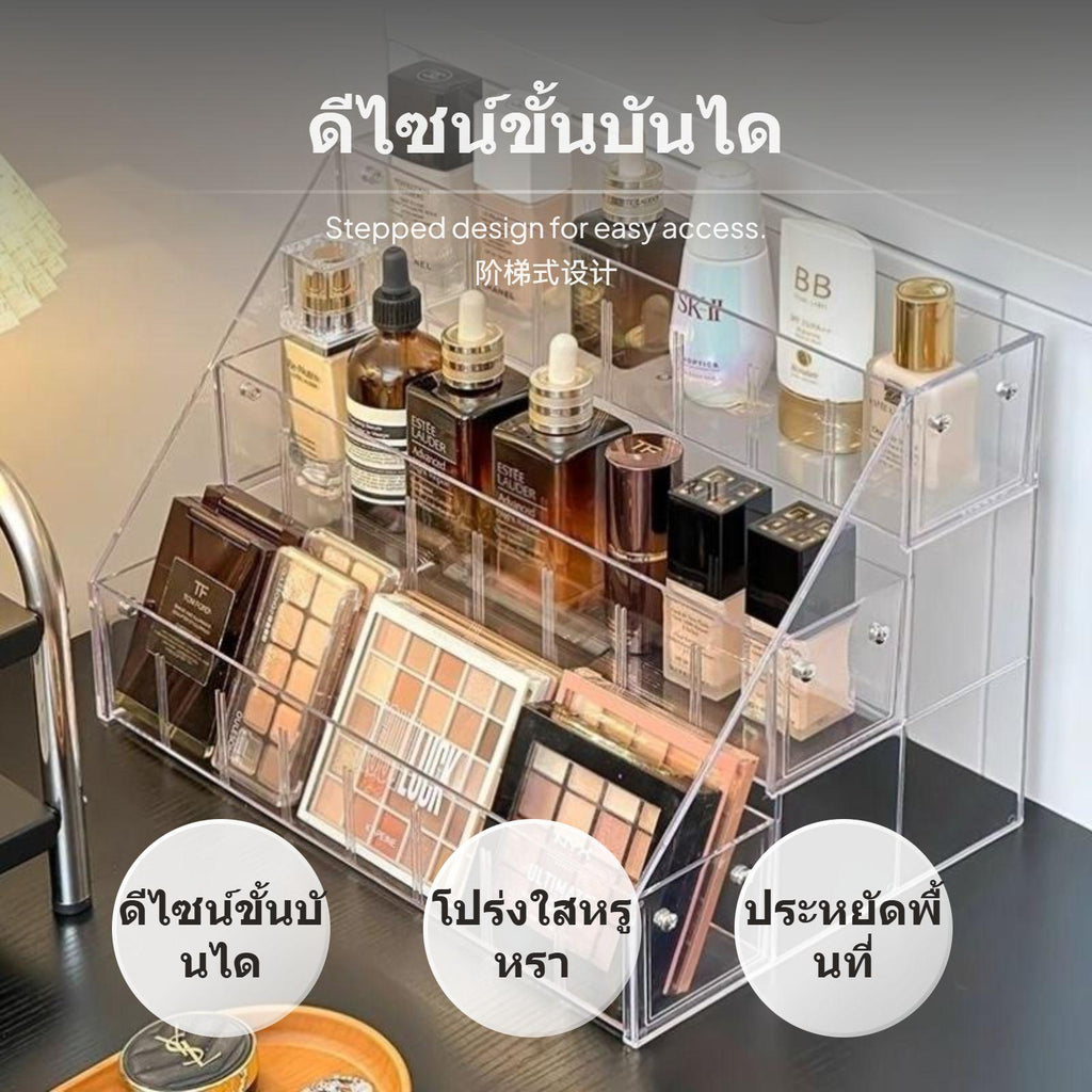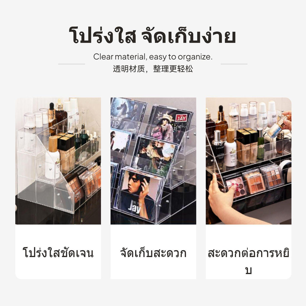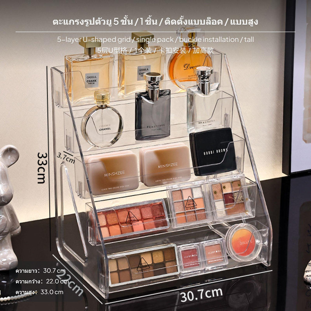 [High-Quality Transparent Material] Made of premium PET or acrylic material, this organizer offers perfectly transparent visibility, ensuring easy reach to stored items while complementing your stylish workspace.[Convenient Tiered Design] The tiered layout provides a clear view of every level, allowing you to neatly organize makeup essentials like lipsticks, perfumes, and eyeshadow palettes while maximizing table space.[Adaptable Storage options] Perfect for cosmetics, but also great for organizing blind boxes, sheet masks, albums, stationery, or collectibles to meet various storage needs around your home or office.[Easy Assembly choices] Available with upgraded screw fixation for enhanced stability or fastenin U-shape assembly for convenient setup, ensuring hassleeffortless installation and dismantling.[Enhanced Capacity & Safety] Features widened and reinforced tiers to hold larger or more items, with a polished, burrburr-resistant surface for safe and comfortable handling.