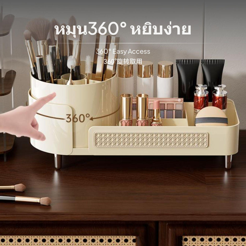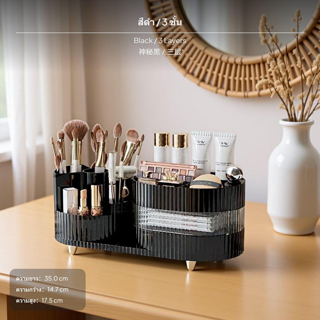 [Efficient Multi-Zone Storage] This makeup organizer box features a thoughtfully divided design and spacious compartments to keep cosmetics, skincare, and brushes easily accessible and well sorted.[Modern Elegant Design] The organizer’s minimalist aesthetic, geometric embellishments, and three timeless color choices enhance any countertop, vanity, or desktop with a refined finish.[Rotating Functionality for Convenience] The innovative 360° rotating brush holder or three-level rotating drawers allow you to reach items quickly from any angle, perfect for busy makeup routines or compact spaces.[Premium PET+ABS Material] Constructed from high-quality PET+ABS, this box is sturdy, easy to clean, and ensures a polished texture that elevates the look and functionality of your cosmetic area.[adaptable for Multiple Settings] perfect for dressing tables, bathroom counters, bedrooms, or office desks, this multi-functional storage holder is designed to organize not just makeup, but also jewelry, stationery, and everyday essentials.Specification: