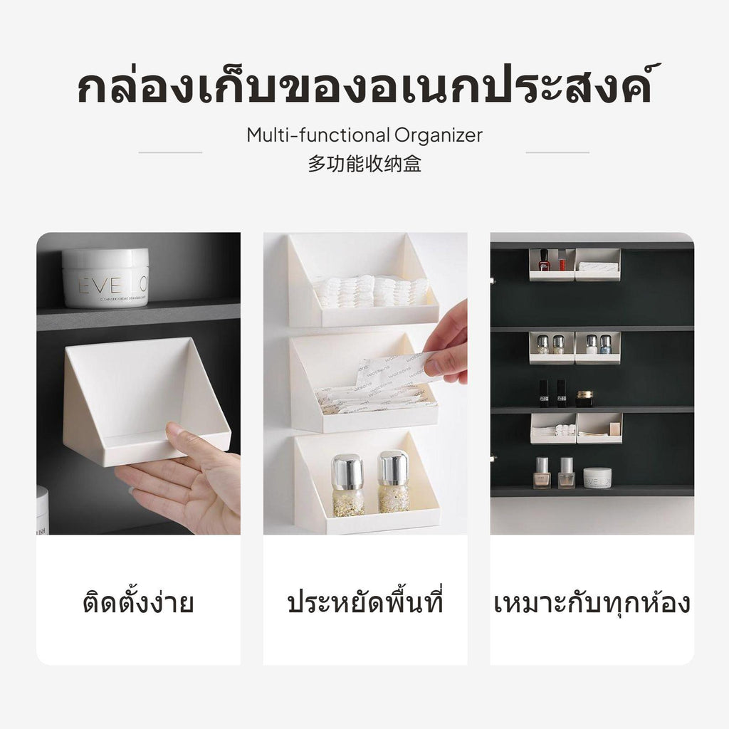 [Optimized Space Utilization] This distinctive slant-opening storage box features a trapezoidal design that ensures quick and easy retrieval to your individual items, eliminating the hassle of searching through clutter.[Premium PP Material] Made from high-quality PP material, this organizer is enduring, easy to clean, and resistant to wear, providing dependable support for your common storage needs.[sticky bonding Installation Without boring] Designed with a no-drill sticky bonding installation system, it ensures a hassleeffortless setup without causing damage to your wall or mirror cabinet, offering strong and stable attachment.[adaptable for Multiple Scenarios] Whether used in the bathroom, vanity desk, kitchen, or study, its space-saving size and layered space utilization make it an ideal option for storing a variety of items like makeup, stationery, or small snacks.[Elegant and Minimalist design] Available in clean ivory and transparent choices, this storage box seamlessly complements a Nordicdesign decor, blending functionality with aesthetics to enhance any bathroom or living space.Specification: