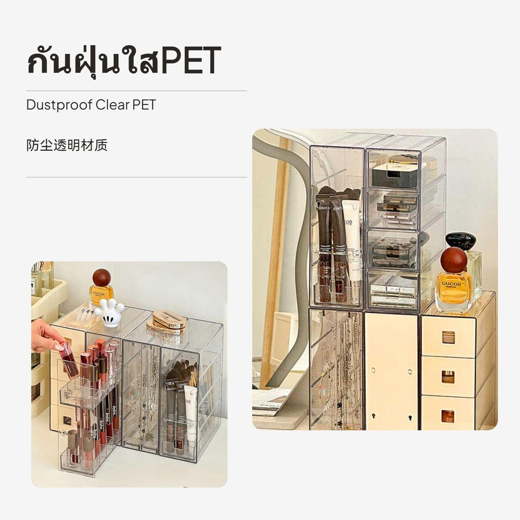 [Efficient Desktop Organizer] Keep your vanity and workspace neat with this multi-function makeup organizer, featuring a drawer design for dustproof storage of cosmetics, jewelry, and small items.[Flexible Storage choices] customizable design lets you freely combine units; transparent PET, stainless steel, and iron choices fit various organizing needs and styles.[Sophisticated Design] Modern minimalist look blends with a vintage accent, offering clear, gray, yellow, black, or silver hues to match home or office decor.[Practical for Any Space] adaptable design is perfect for bathroom counters, desks, or small corners in homes or offices; provides high capacity for lipsticks, brushes, and accessories.[Quality & Value Combined] High-quality materials ensure easy cleaning and longenduring elegance, giving your surface a stylish, well-organized enhancement.