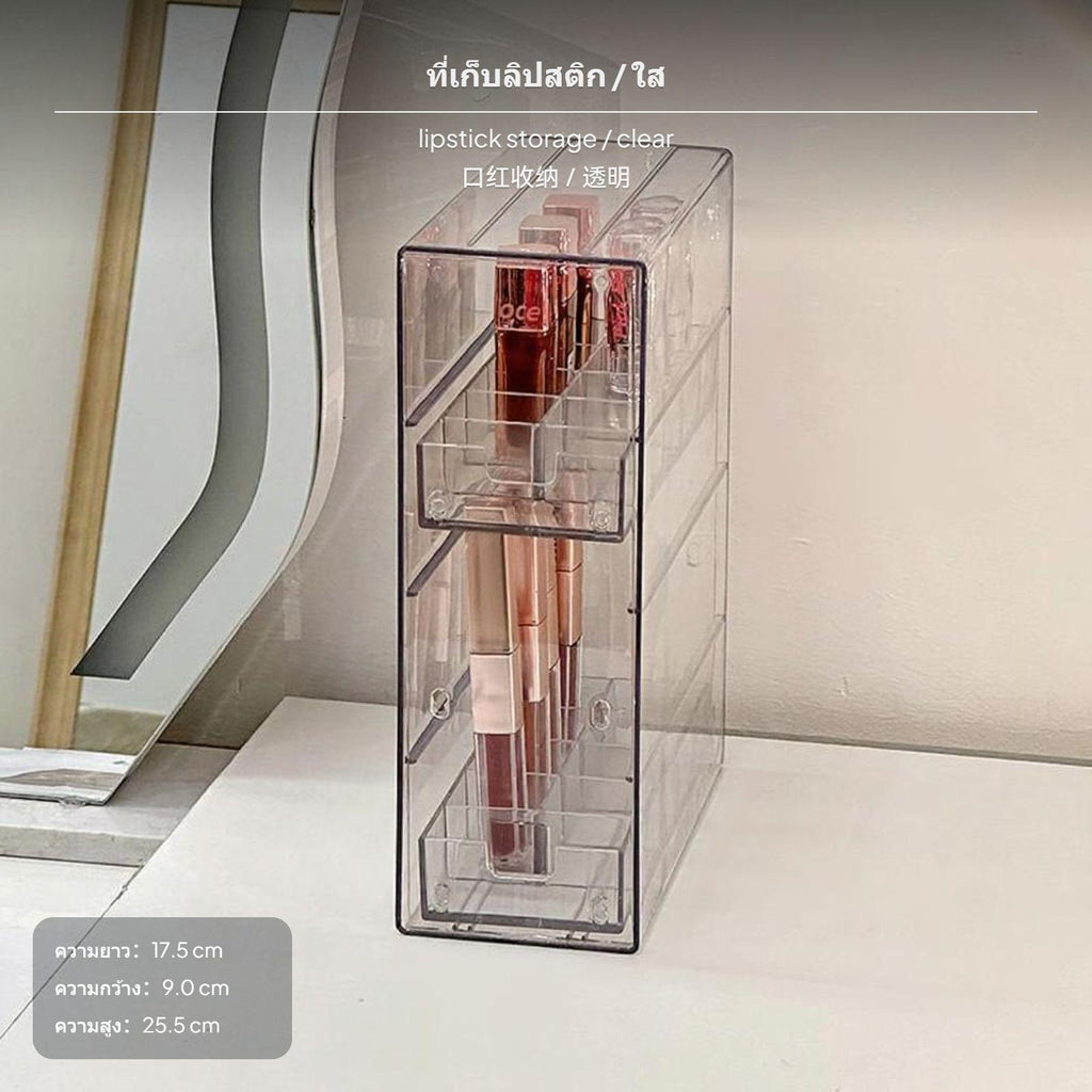 Multi-Function Makeup Organizer, Desktop Storage Box, Drawer Design, Dustproof Cosmetic Holder, Modern Minimalist, 2-Tier Lipstick Clear