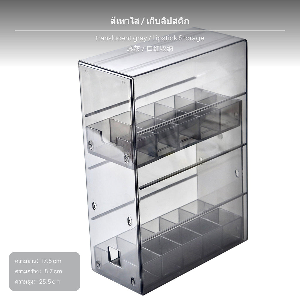 Multi-Function Makeup Organizer, Desktop Storage Box, Drawer Design, Dustproof Cosmetic Holder, Modern Minimalist, 2-Tier Lipstick Gray