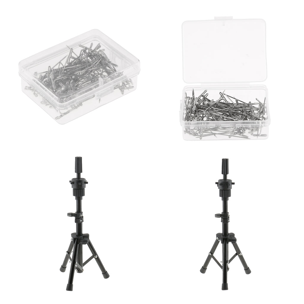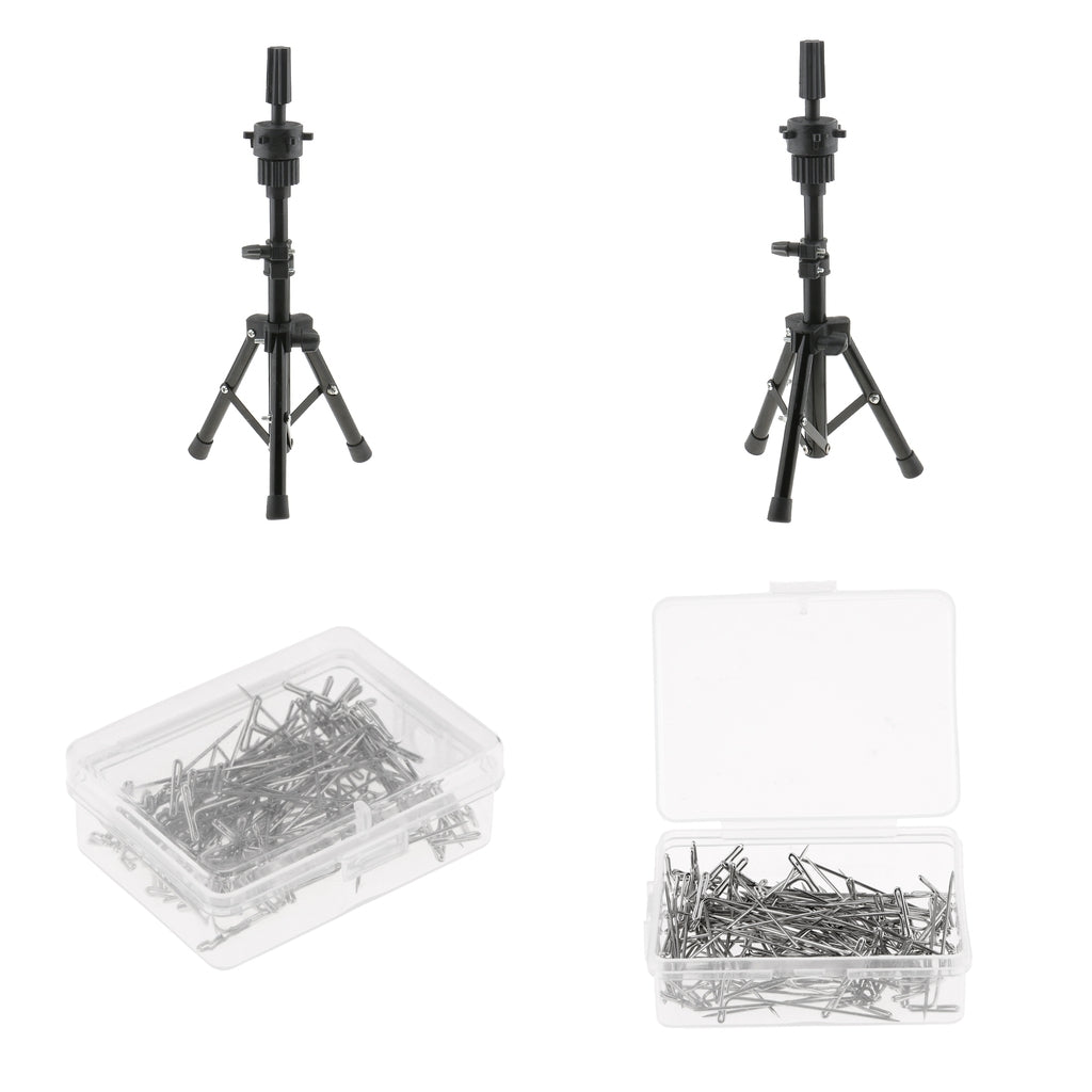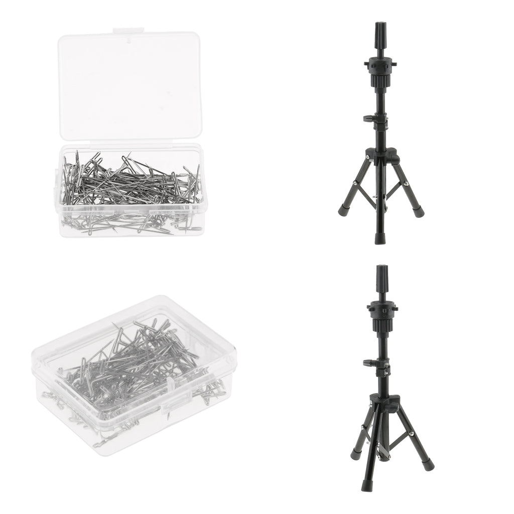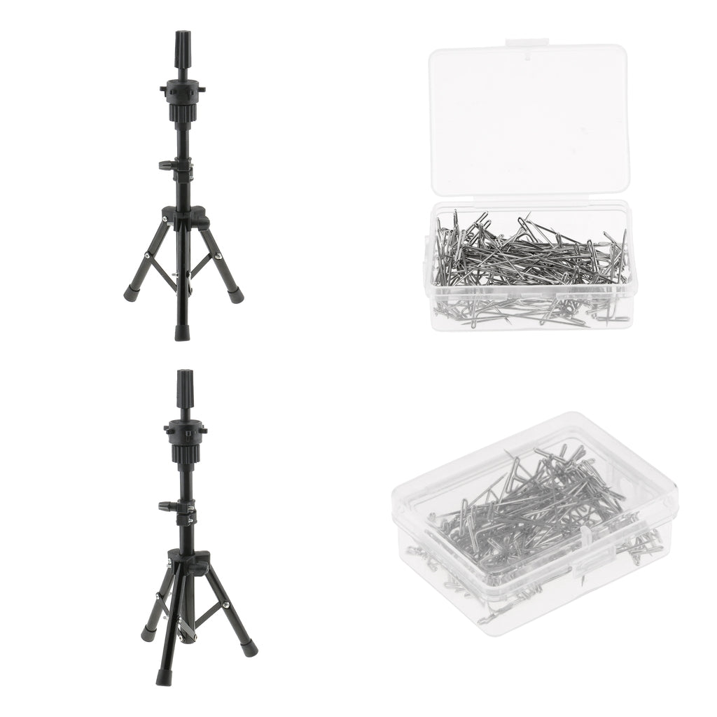 Maxbell 2PCS Mannequin Training Practice Head Holder Tripod Stand+T Needle Pin Set