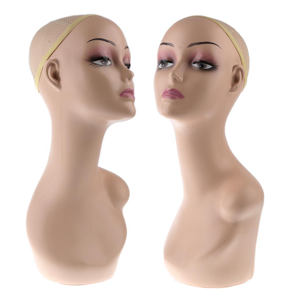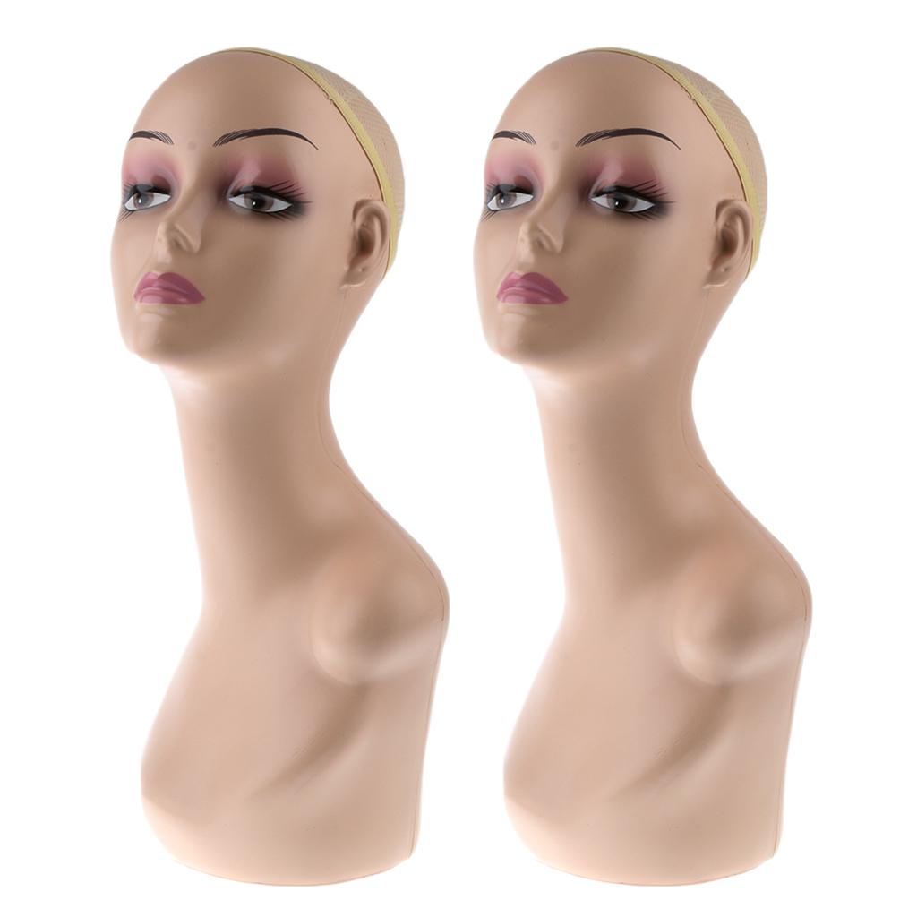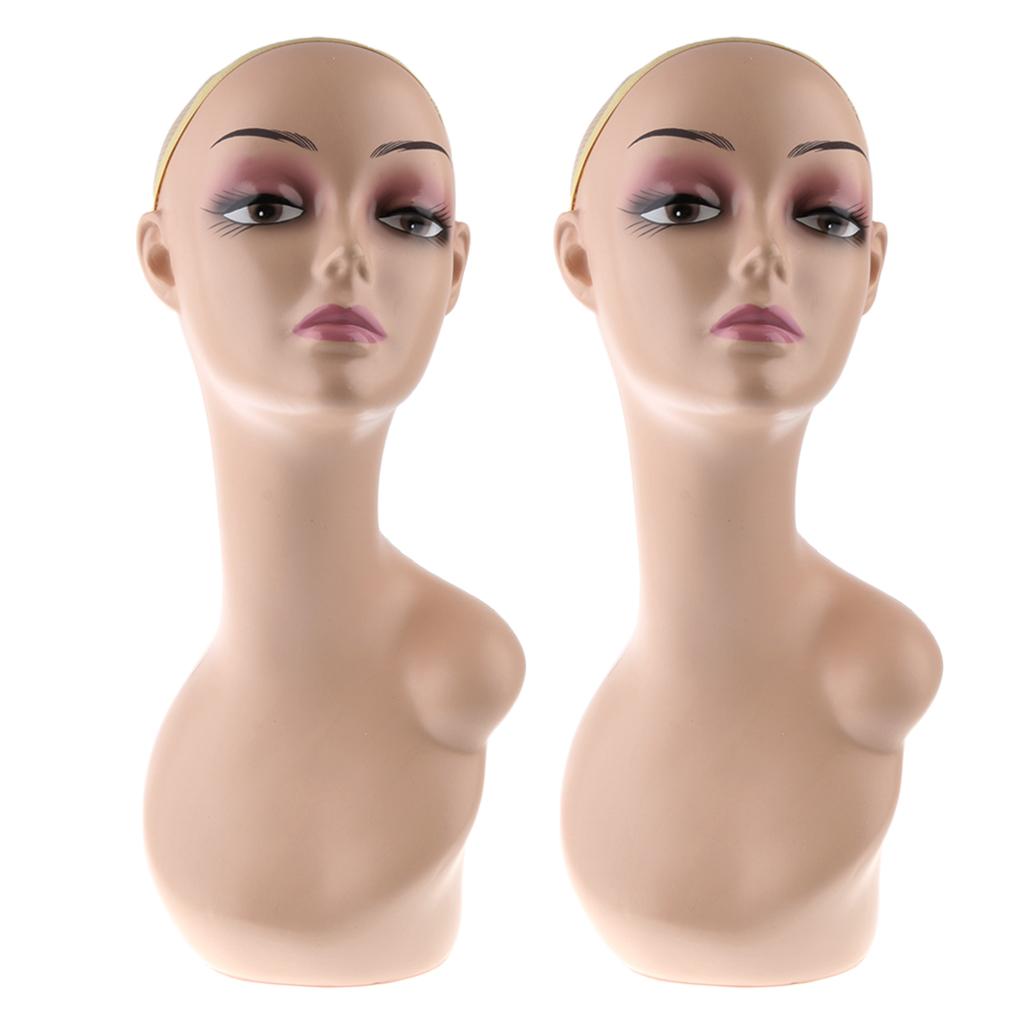 Maxbell ABS Female Wig Mannequin Head Hairpiece Jewelry Hat Display Bust Stand 2pcs