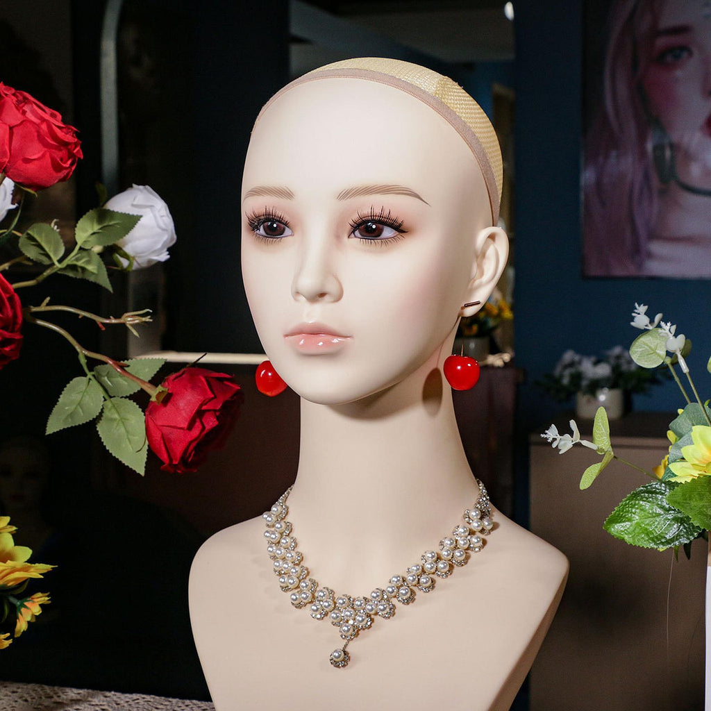 Maxbell Female Mannequin Head Stable Manikin Head for Shopping Mall Barbershop Salon