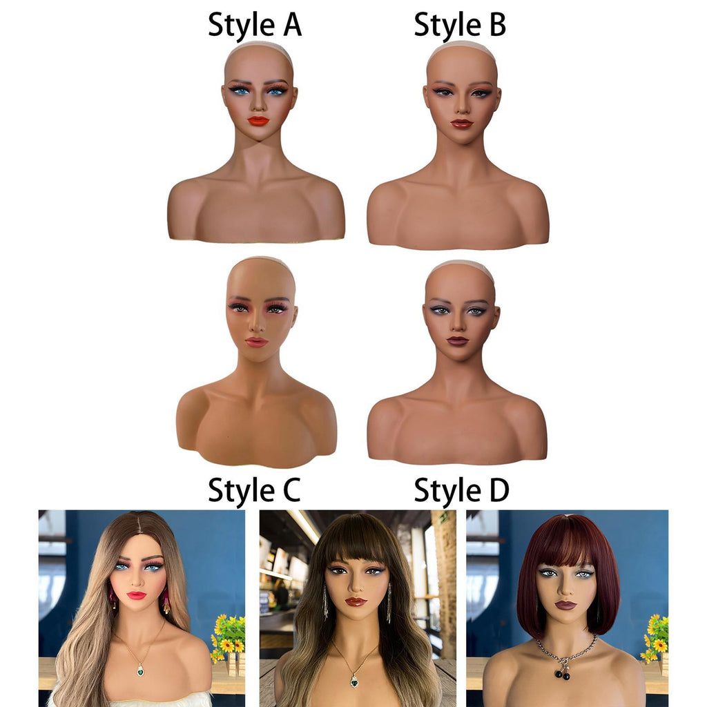 Maxbell Realistic Mannequin Head Female Mannequin Head with Shoulder for Jewelry Wig Style A