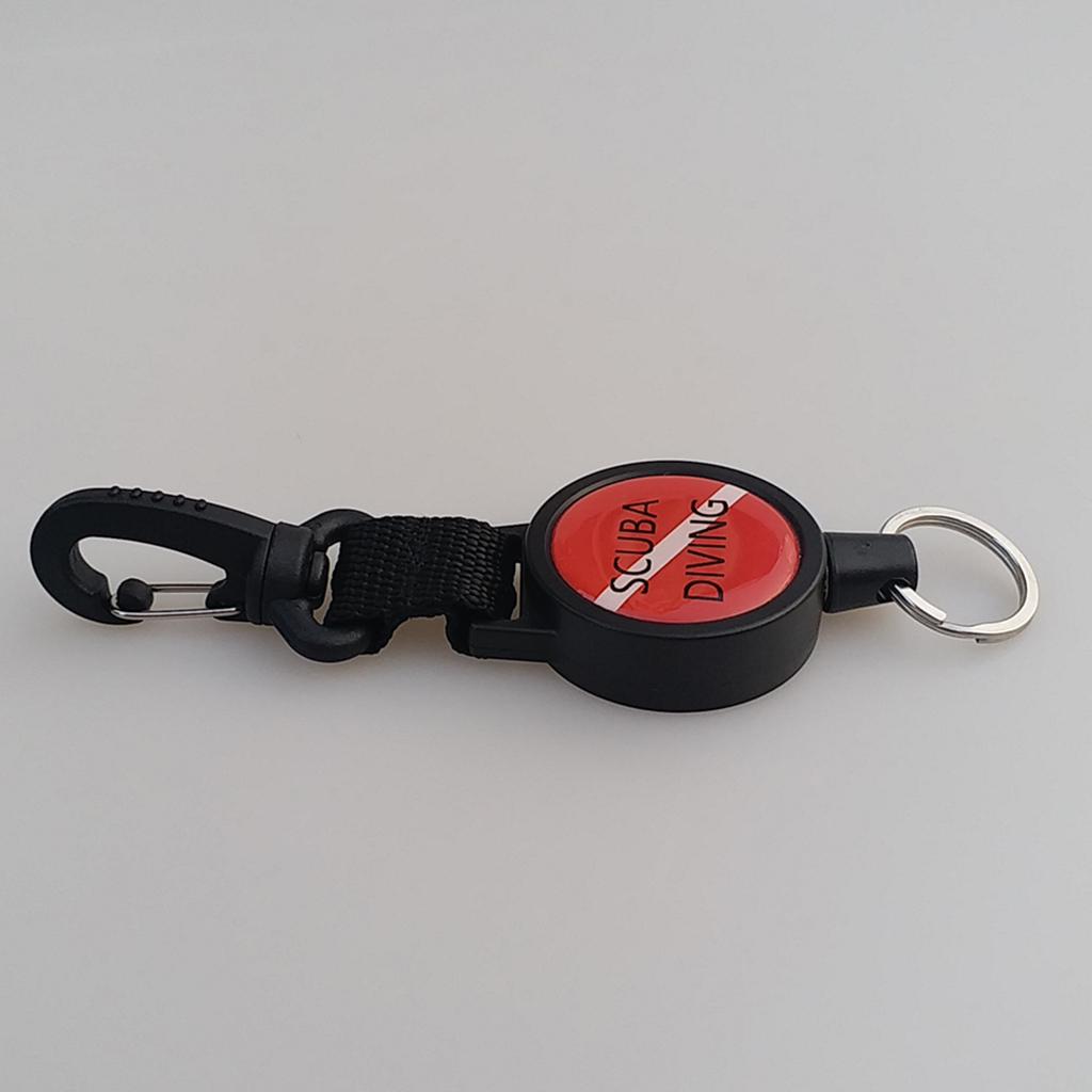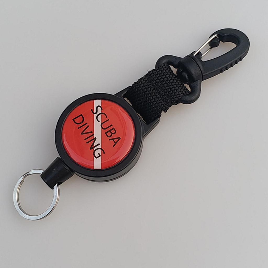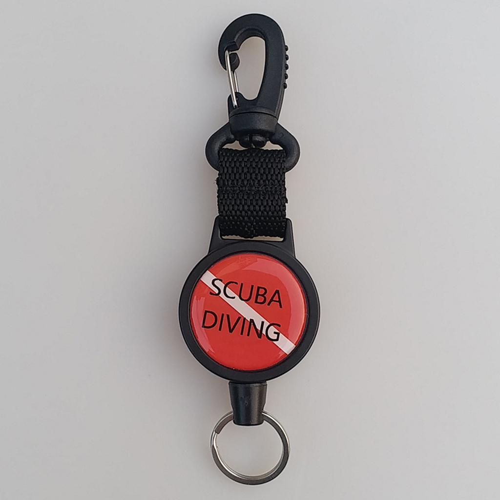 Stretchable scuba diving dive flag design webbing lanyard with rotatable safety clip hook