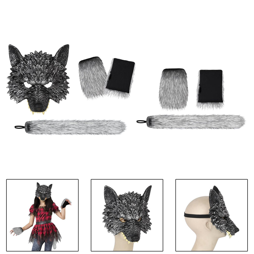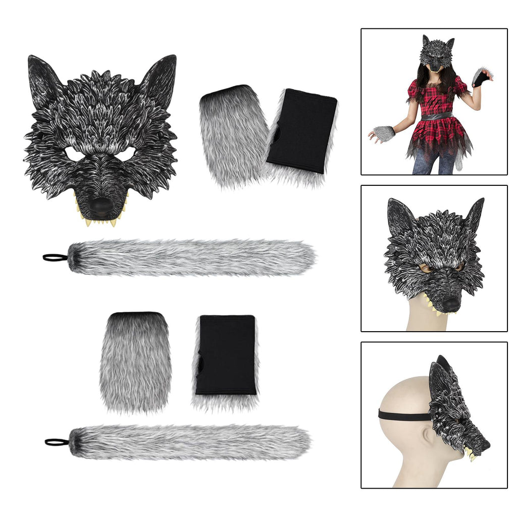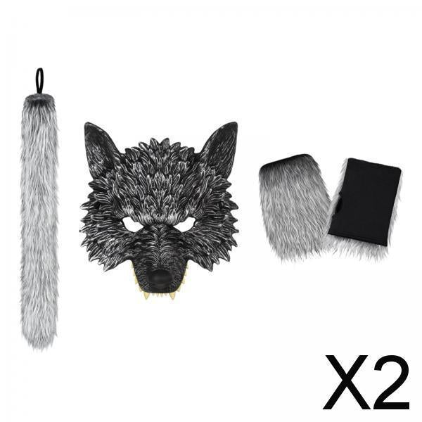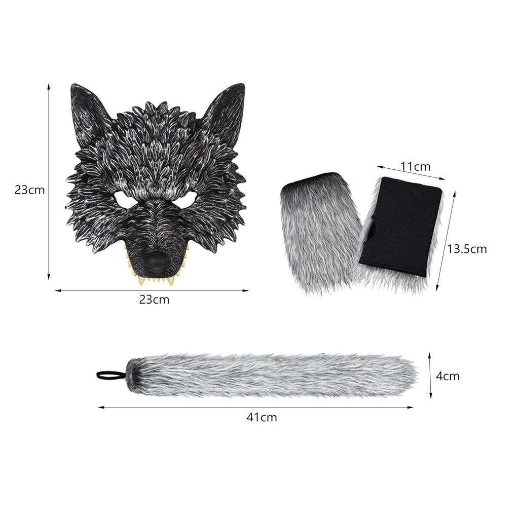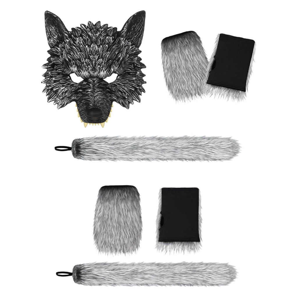 Maxbell 2xWolf Tail and Gloves Set Werewolf Cosplay Masquerade for Party Festival Prom with Mask 23cmx23cm
