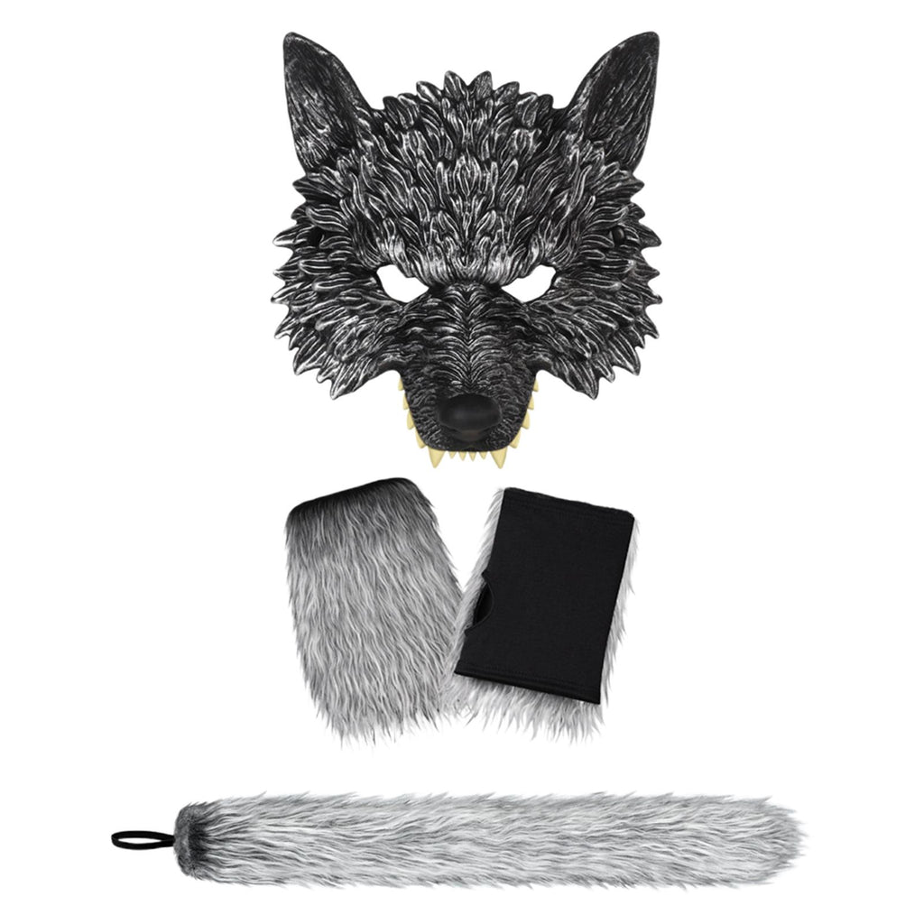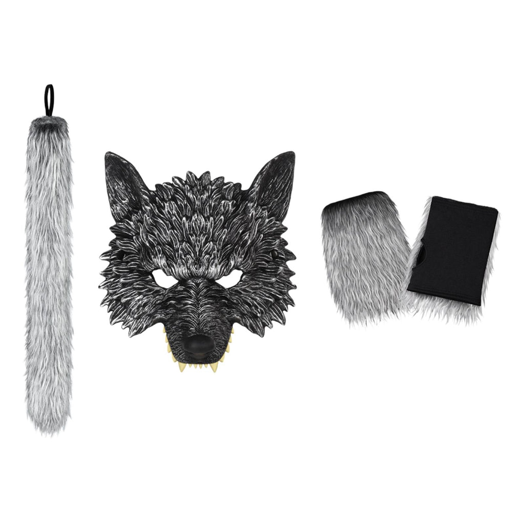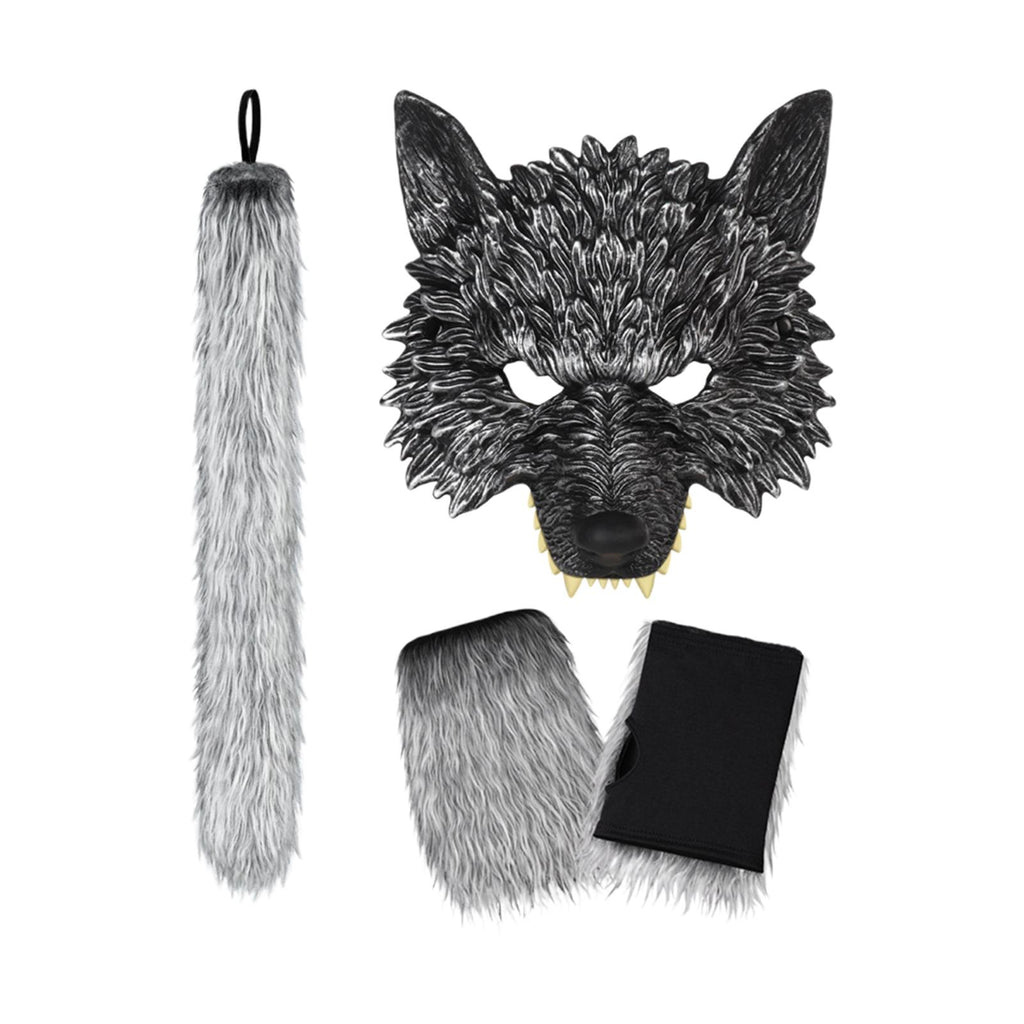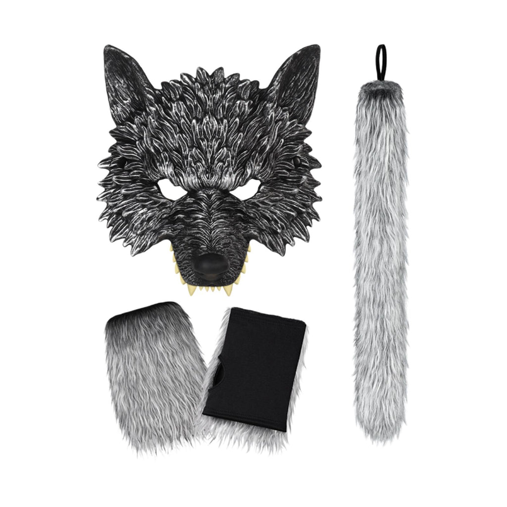 Maxbell 2xWolf Tail and Gloves Set Werewolf Cosplay Masquerade for Party Festival Prom with Mask 23cmx23cm