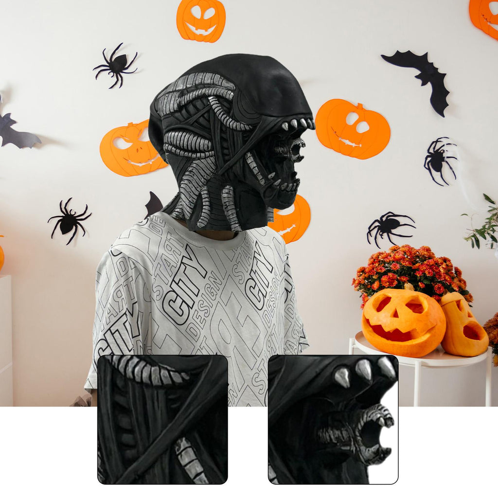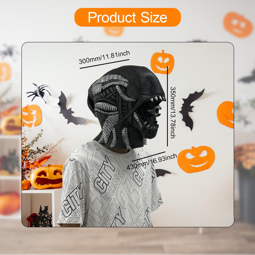 【Unique Design】: Halloween Alien Mask features a unique design with a frightening yet playful alien inspired look. Meticulously crafted with intricate details, it recreates a classic sci fi horror aesthetic, perfect for Halloween, cosplay, or themed parties
