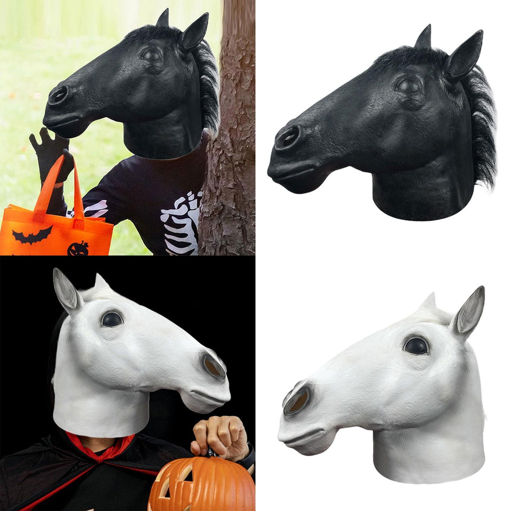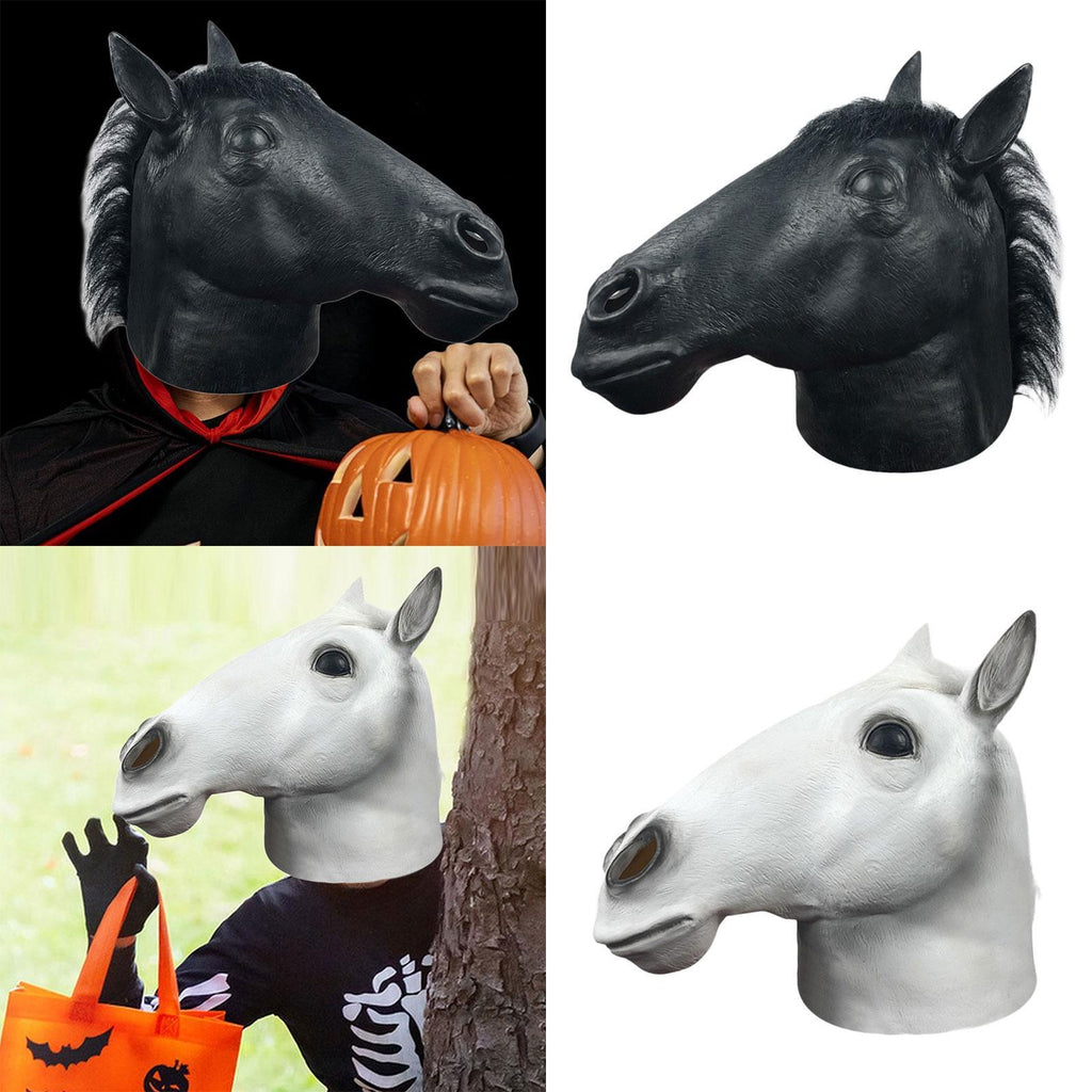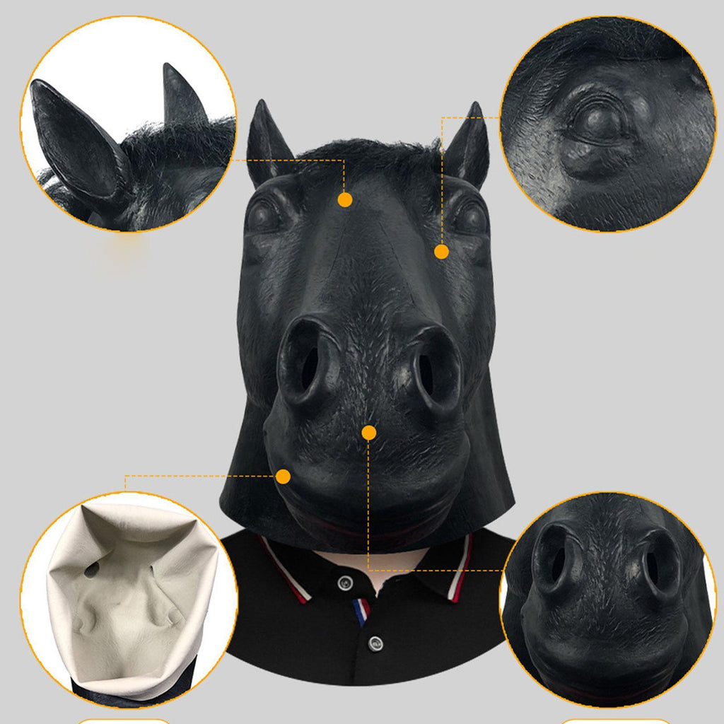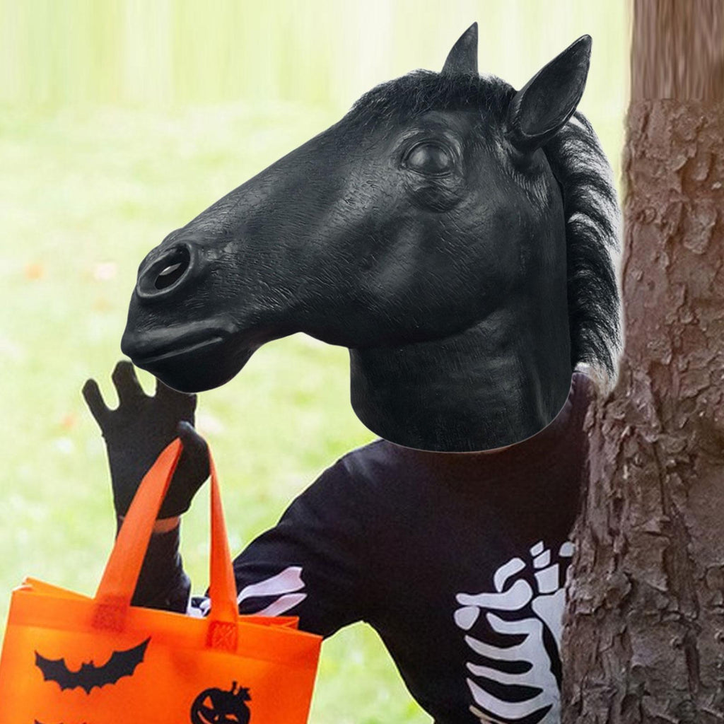 Maxbell Halloween Horse Mask Latex Animal Mask for Role Playing Birthday Dressing up Black
