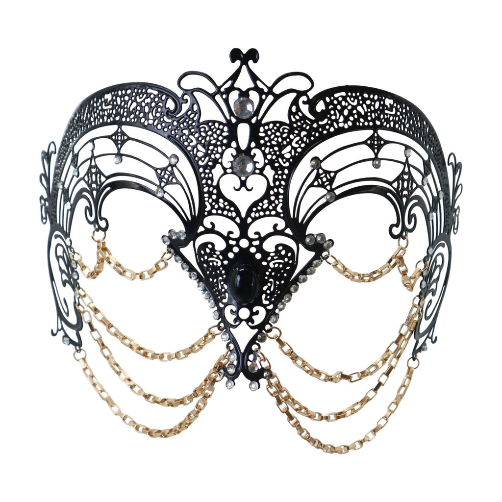 Maxbell Masquerade Mask with Adjustable Strap Half Face Mask for Club Carnival Party Black Gold Chain