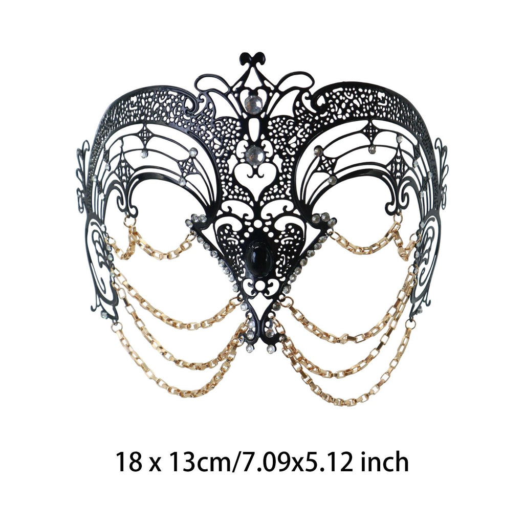 【Elegant Design】: The Halloween Party Mask showcases a refined rhinestone inlay, complemented by a chain hollow design that adds an extra touch of elegance