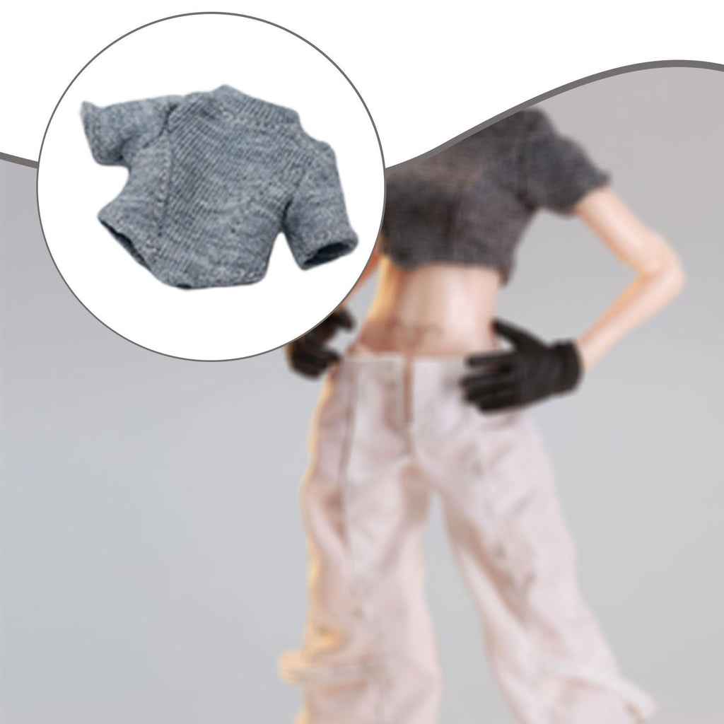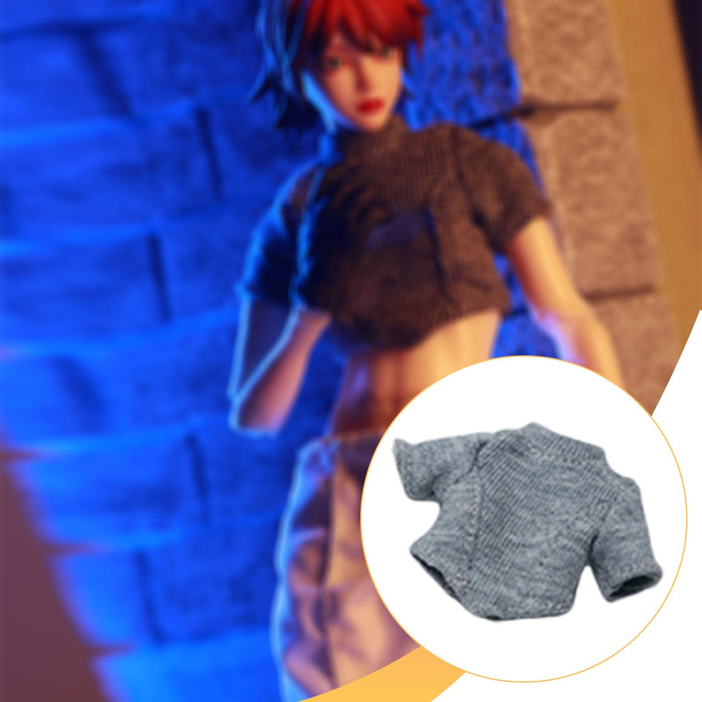 1/12 Female Action Figure Clothes Doll Costume Accessories Trendy Photo Prop T Shirt Light Grey
