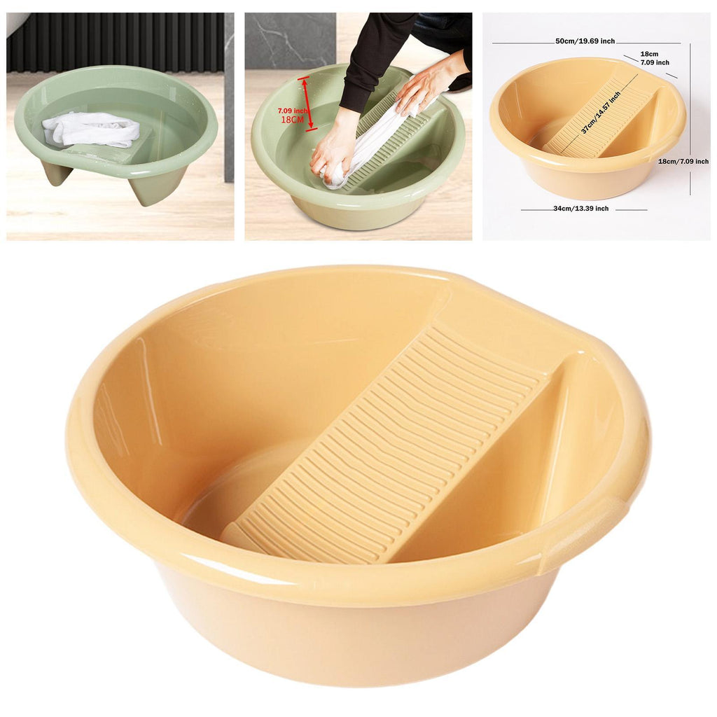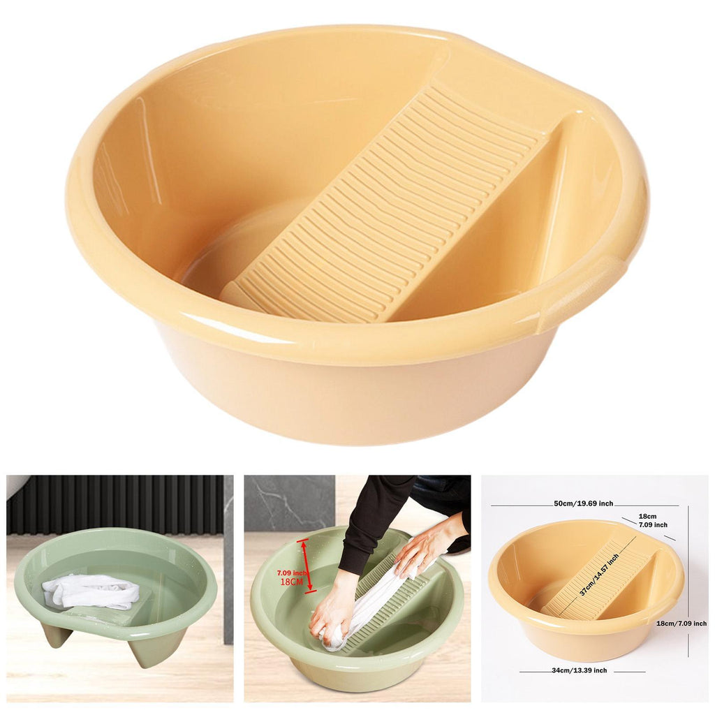 【2 in 1 Design】: This innovative basin comes with an integrated washboard, making it convenient and practical for hand washing clothes at home or on the go