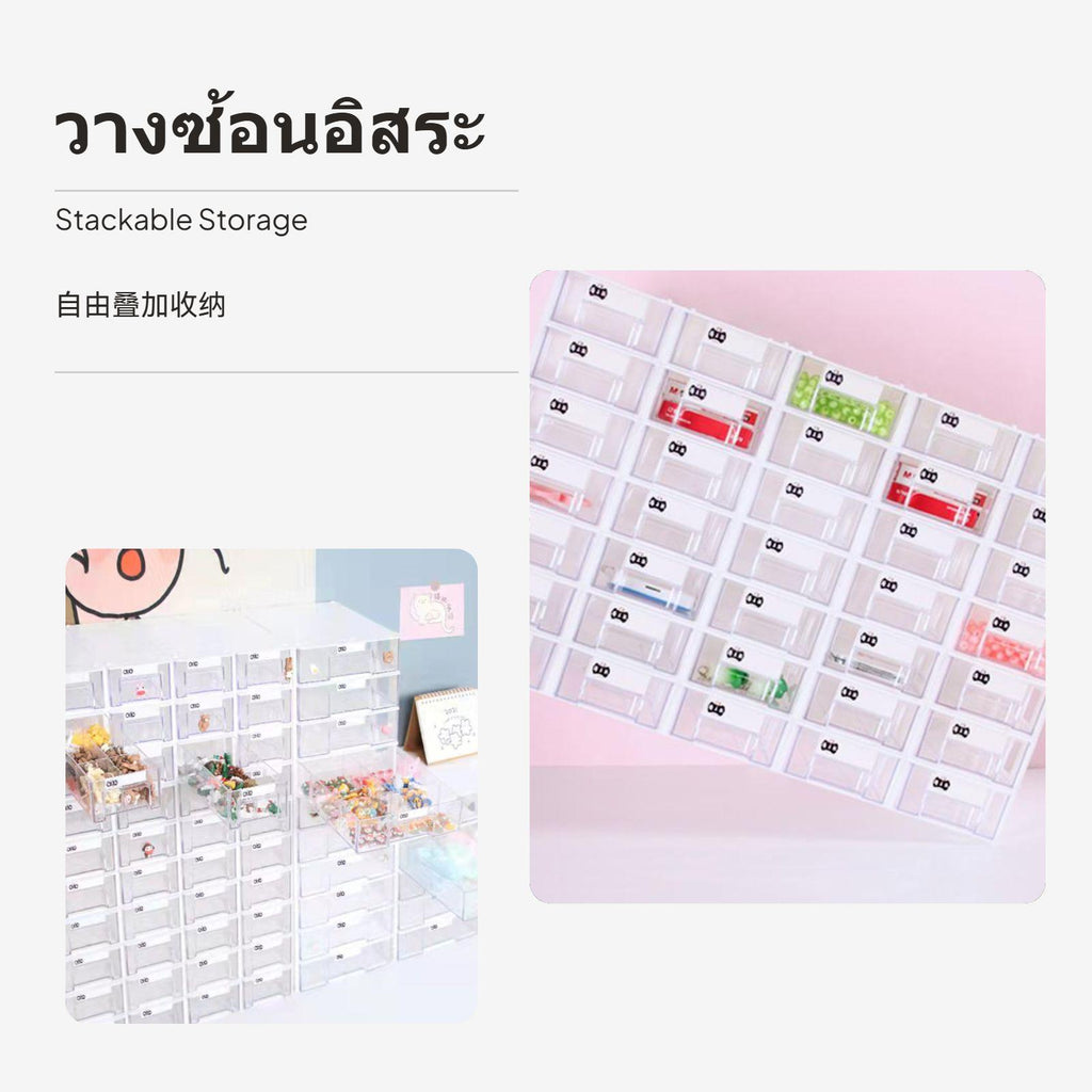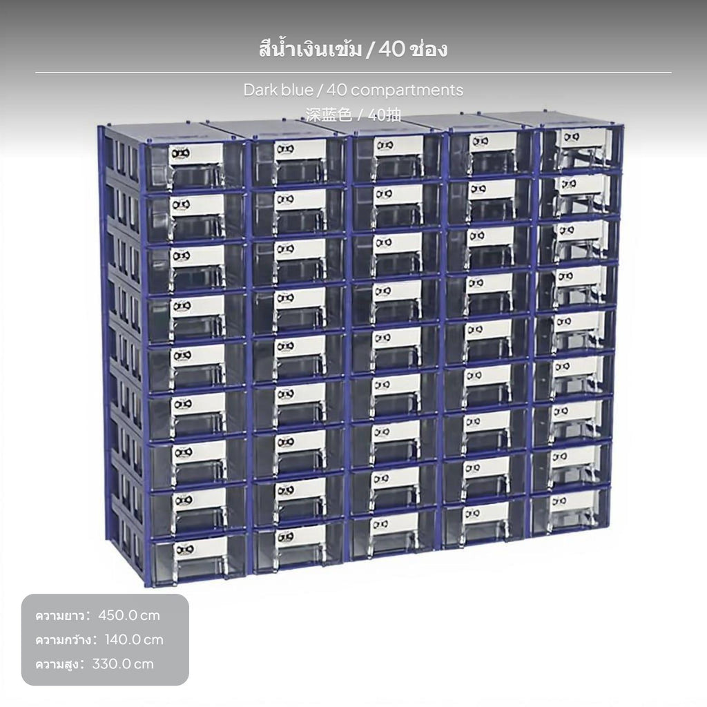 12-Drawer Desktop Storage Organizer, Stackable Transparent Drawer Box for Cosmetics, Nail Polish, Office Supplies, Rectangular Plastic Cabinet 1 Dk Blue 40P