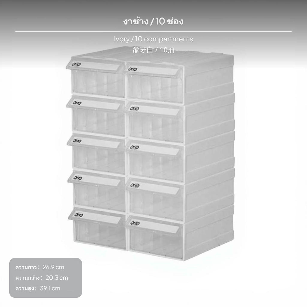 12-Drawer Desktop Storage Organizer, Stackable Transparent Drawer Box for Cosmetics, Nail Polish, Office Supplies, Rectangular Plastic Cabinet 5 Ivory 10P