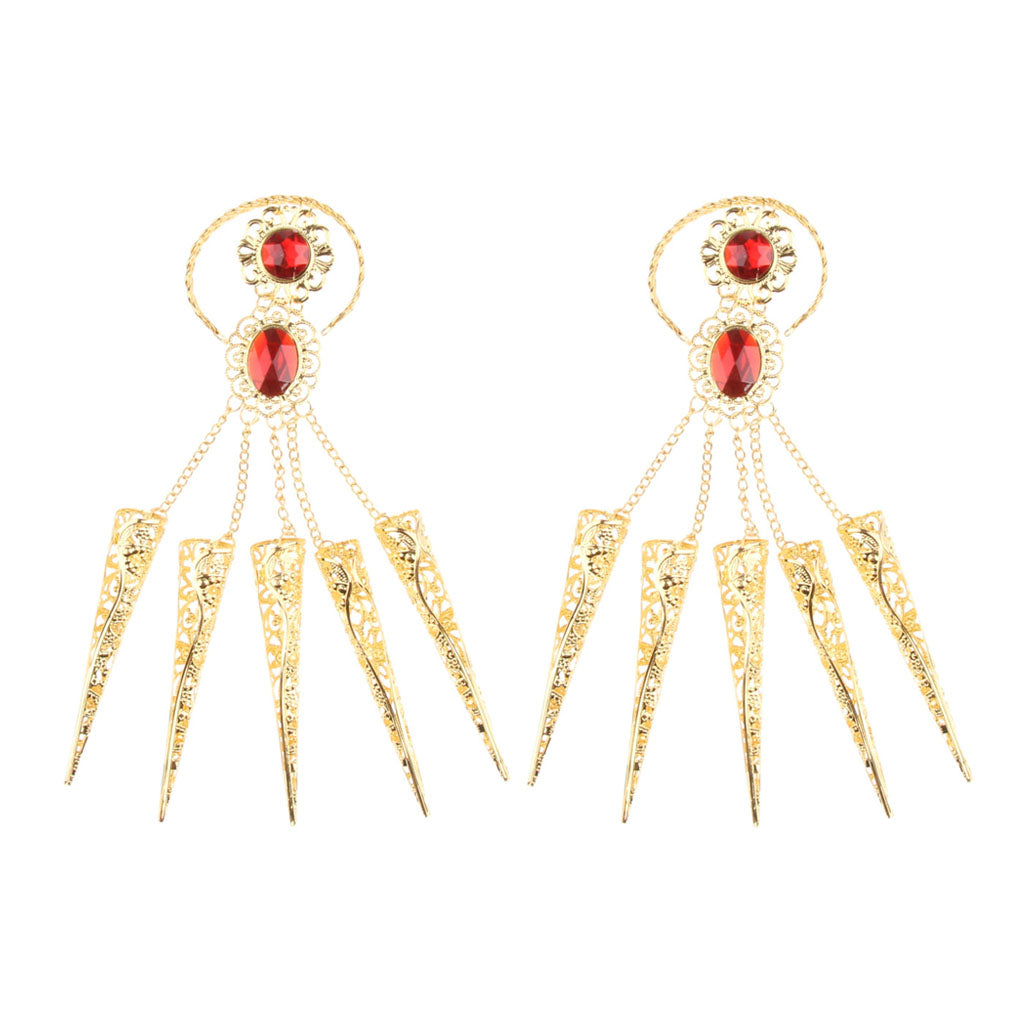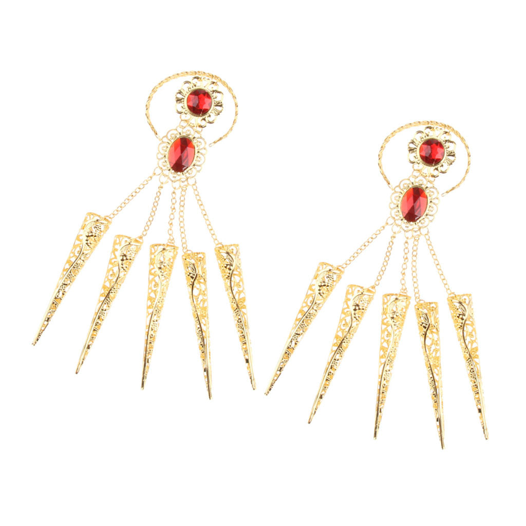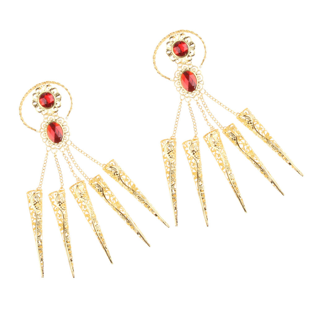 Maxbell 2x Girl Belly Dance Gold Bracelet 5 Finger Nails Thai Costume Hand Jewerlly