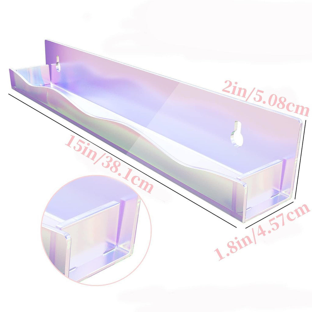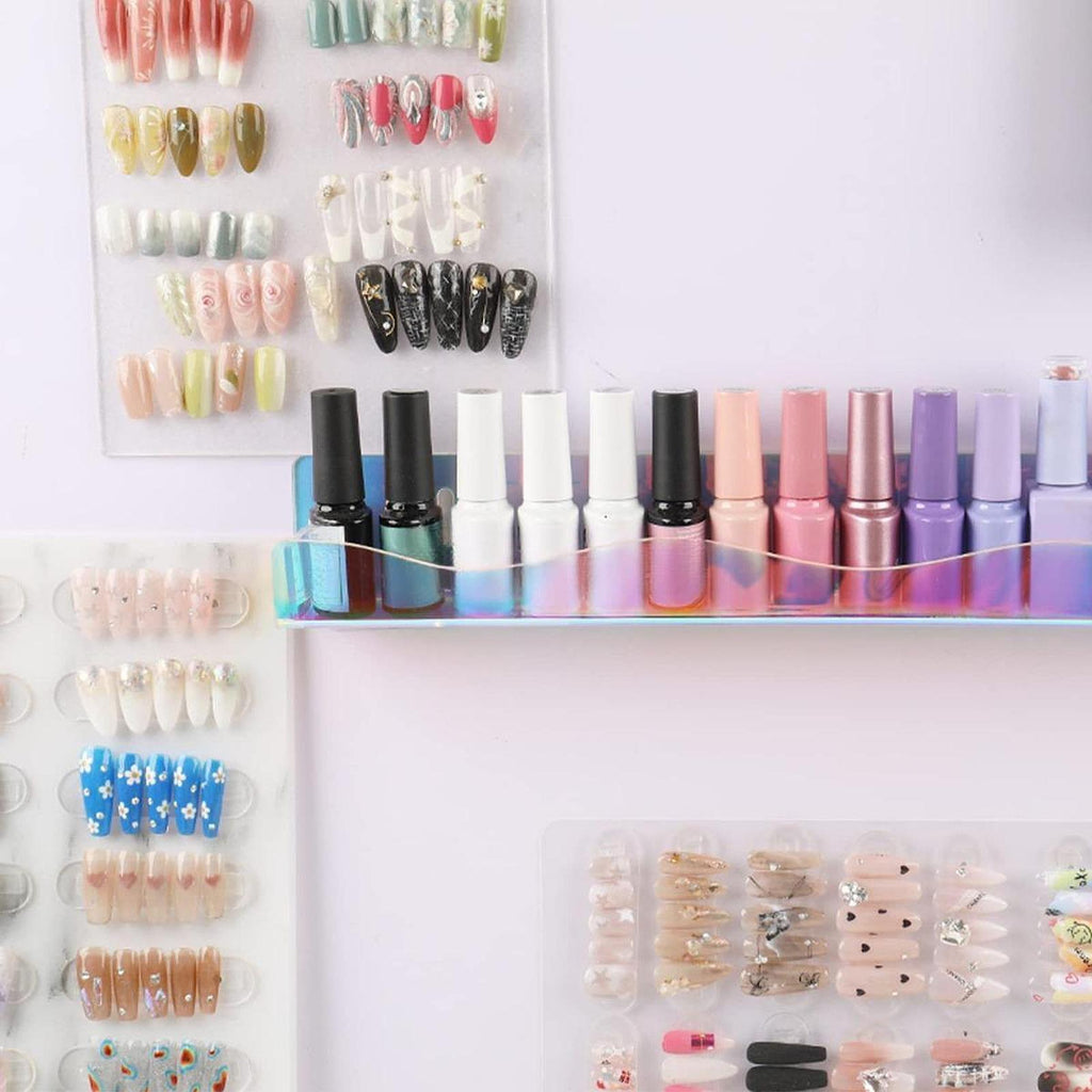 【Rainbow Iridescent Appearance】The nail polish organizers wall mounted surface showing luminous color that seems to change when seen from different angles, the transparent vision makes all items clear at a glance and add a touch of style and charm to your room