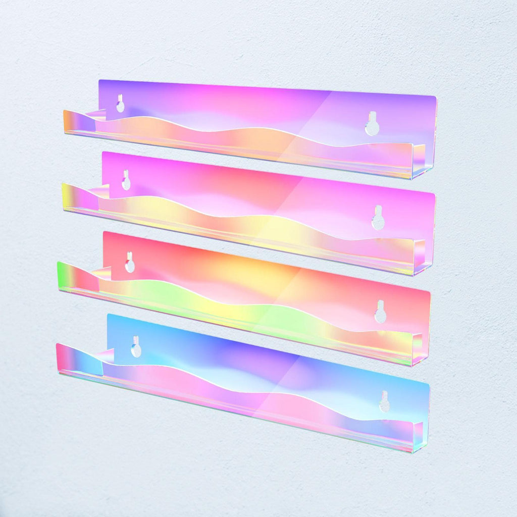 【Upgraded Design】The rainbow acrylic shelf organizers with beautiful wavy lines,holds all kind of brand Name Bottle nail polish,make it easy to see the nail polish color you are looking for,and doesn't take up much dresser space,keeping your room neat and tidy