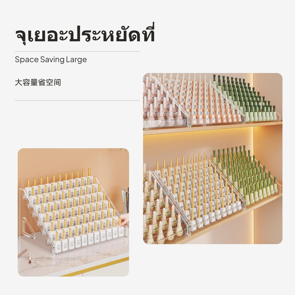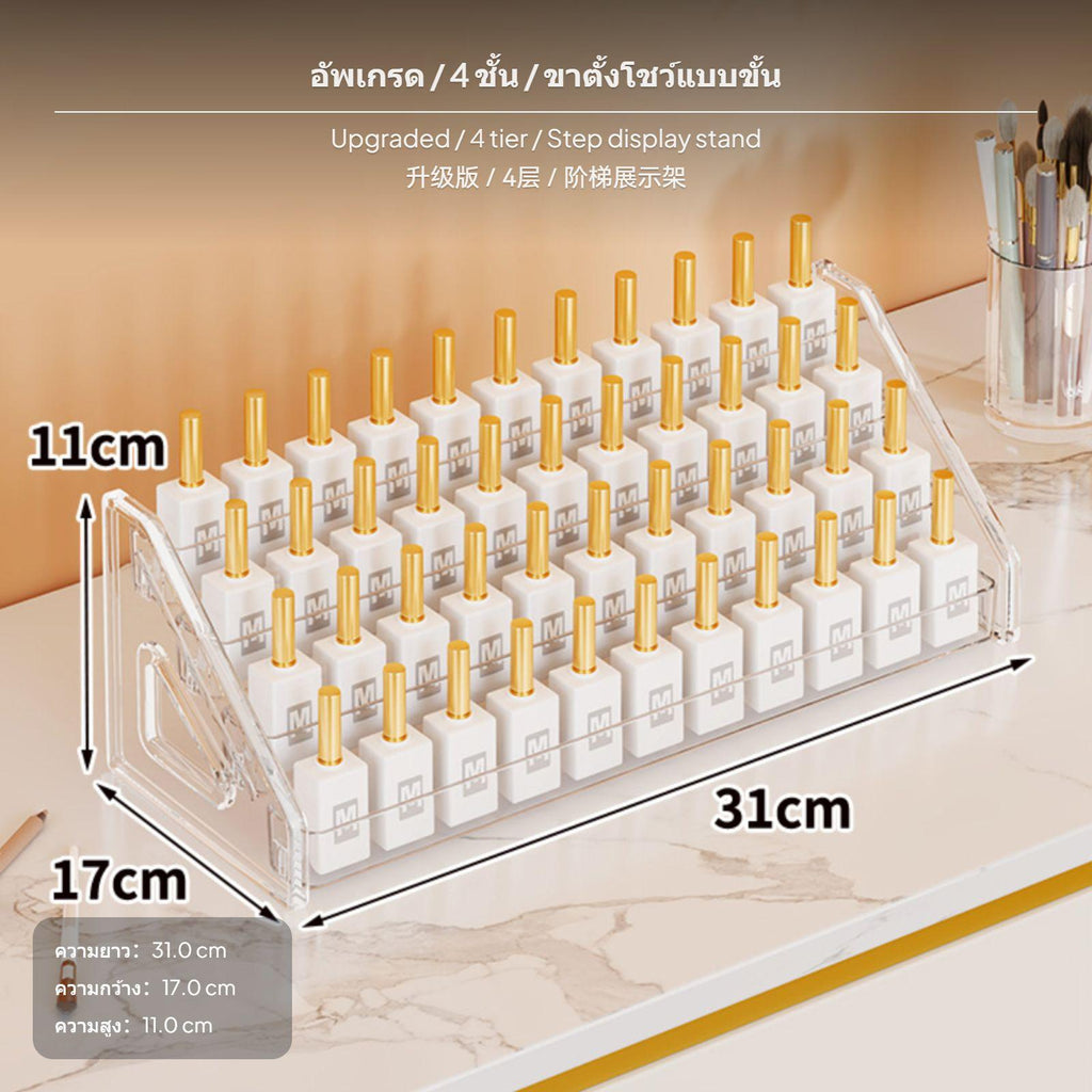 [Efficient Multitier Makeup Storage] The 7-tier transparent stair step organizer offers clear visibility for cosmetics, allowing easy categorization and reach to nail polish, eyeshadow, lipstick, and more with its step-by-step arrangement.[Premium High Transparency PS Material] Crafted with thickened PS, this organizer features a sleek solid color design that easily integrates with modern bedroom or vanity setups while ensuring a stable framework.[Safe and Practical Raised Guardrails] Each level includes a 2.5cm guardrail to prevent items from sliding away, supporting safe display and sorting of cosmetic items essentials.[instant-lockOn Assembly] The rack uses a simple snap-on mechanism, making installation hassleeffortless and usereasy-to-use whether positioned on your vanity, desktop, or in a bedroom.[Flexible Size choices] Multiple tier choices (3-7 tiers) accommodate various organization needs, helping keep your space neat and maximizing your makeup collection’s visibility and order.Specification: