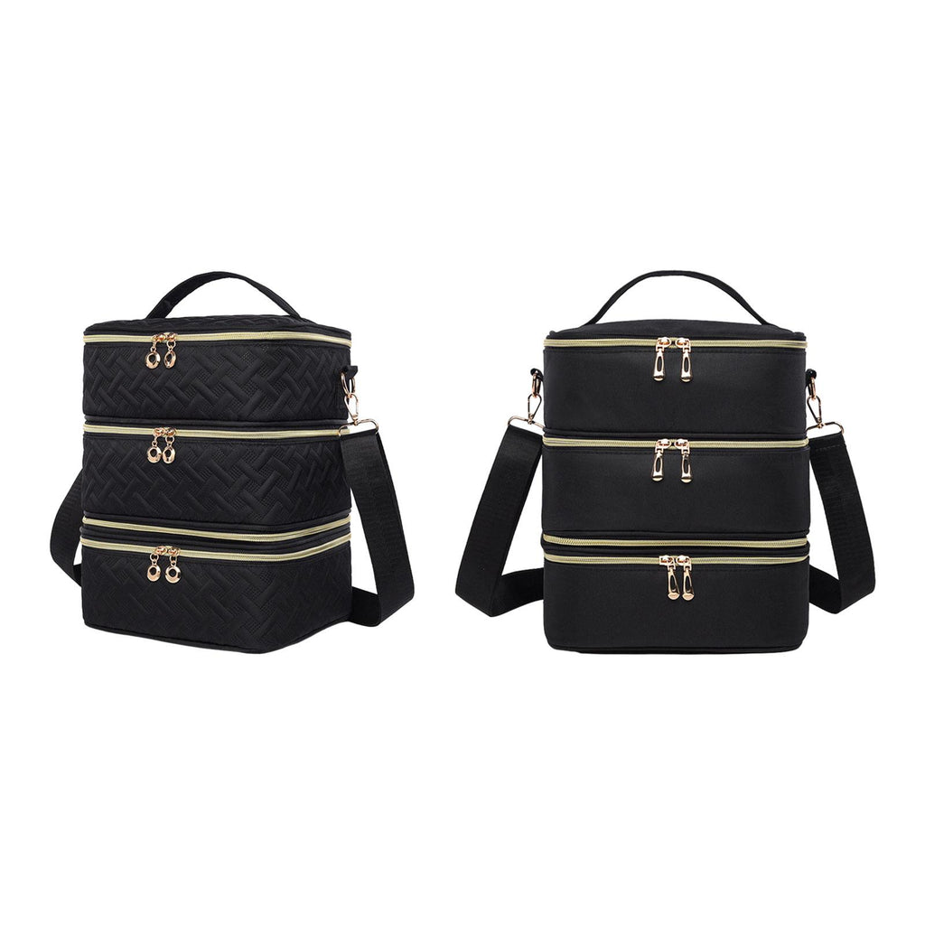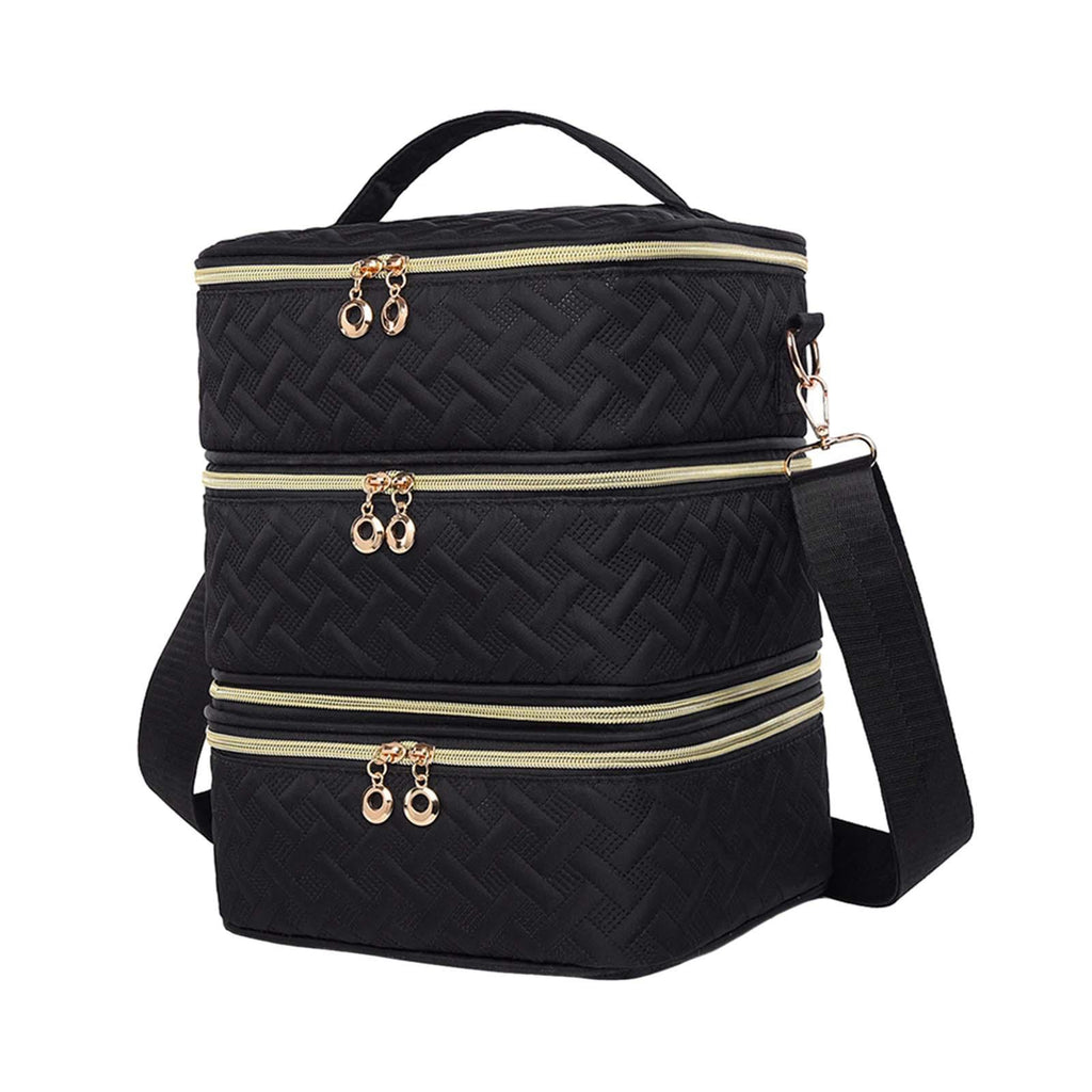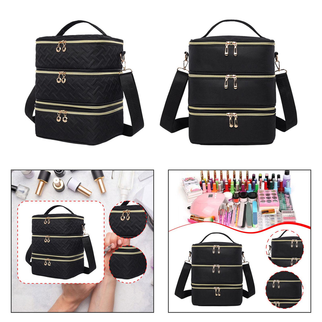 【Removable and multifunctional】: The third layer of Nail Polish Carrying Case Bag is detachable and can be used alone to reduce weight. Its compact size (24cmx20cmx30cm/9.45inchx7.87inchx11.81inch) and lightweight properties make it not only an ideal nail polish storage bag, but also versatile, and can be used as a cosmetic bag, essential oil bag or travel toiletries bag